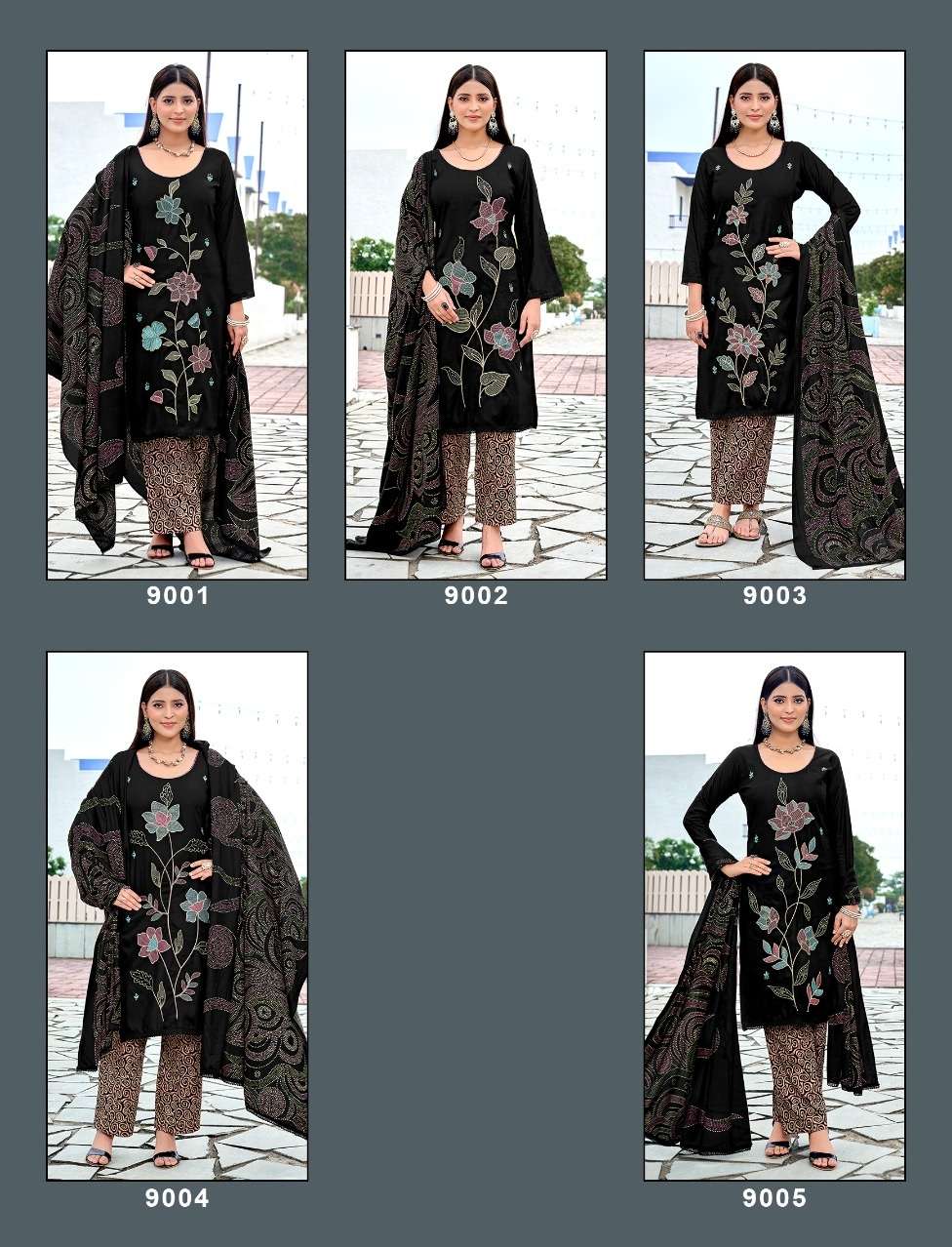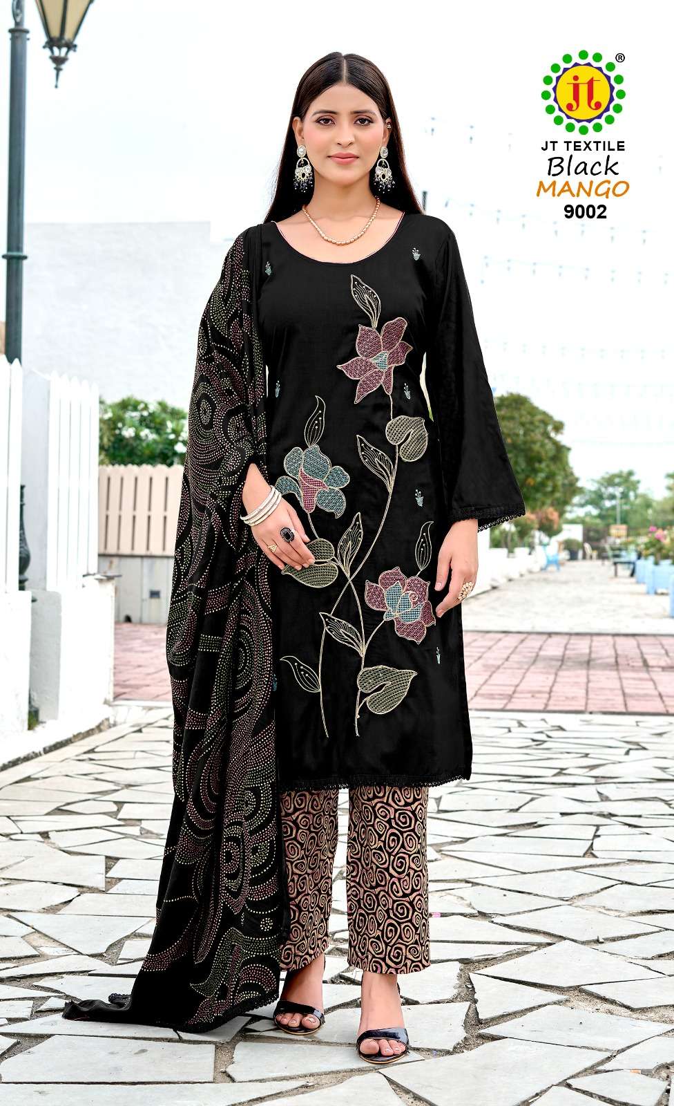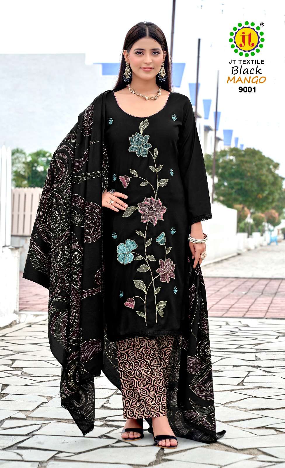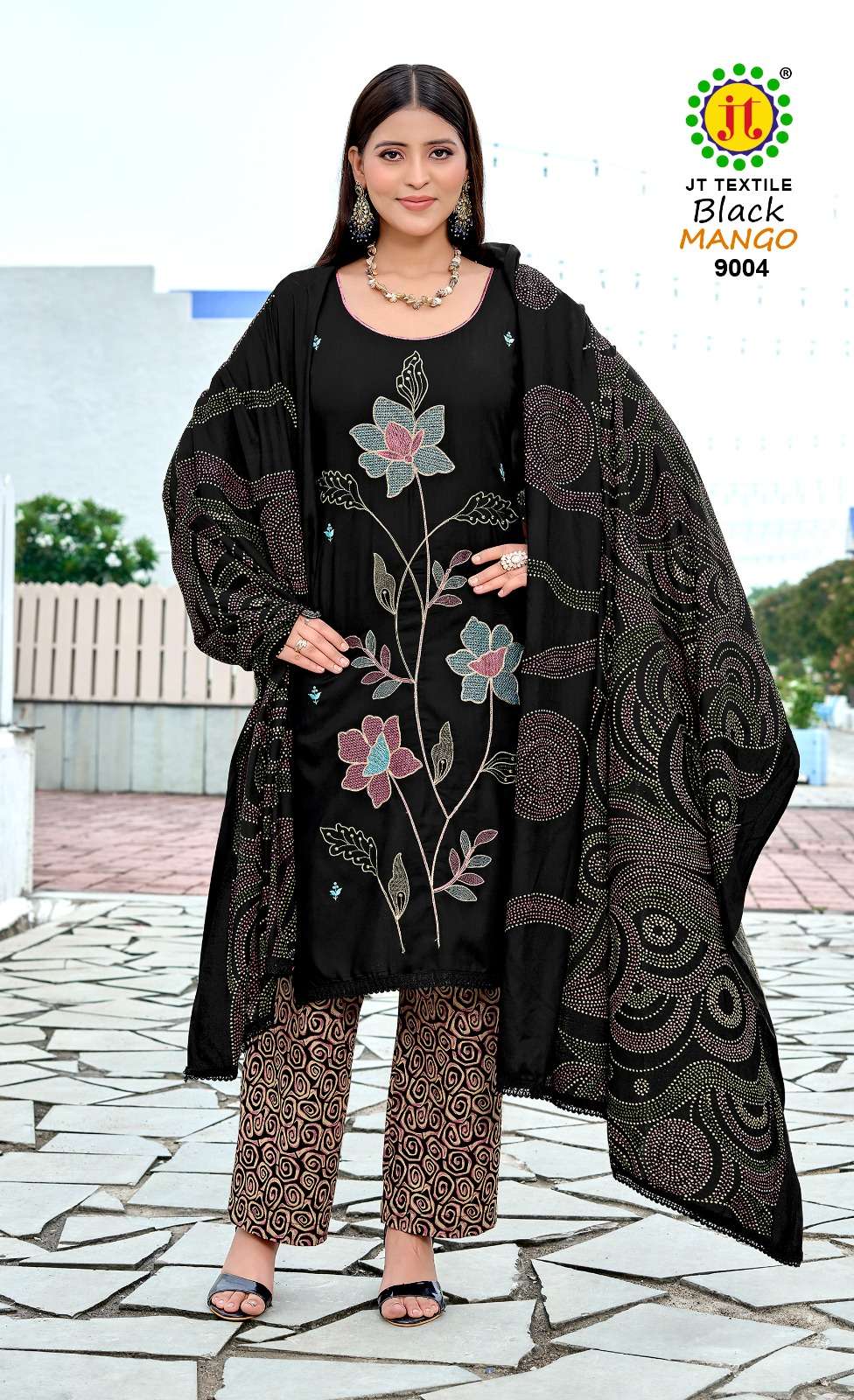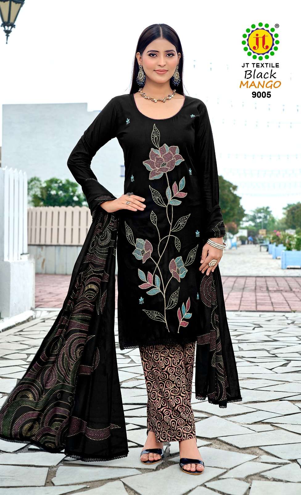 Catalogue: | JAMATMAL TILOKCHAND Black Mango 9️ Rayon Fabric Suit With Coding Work |