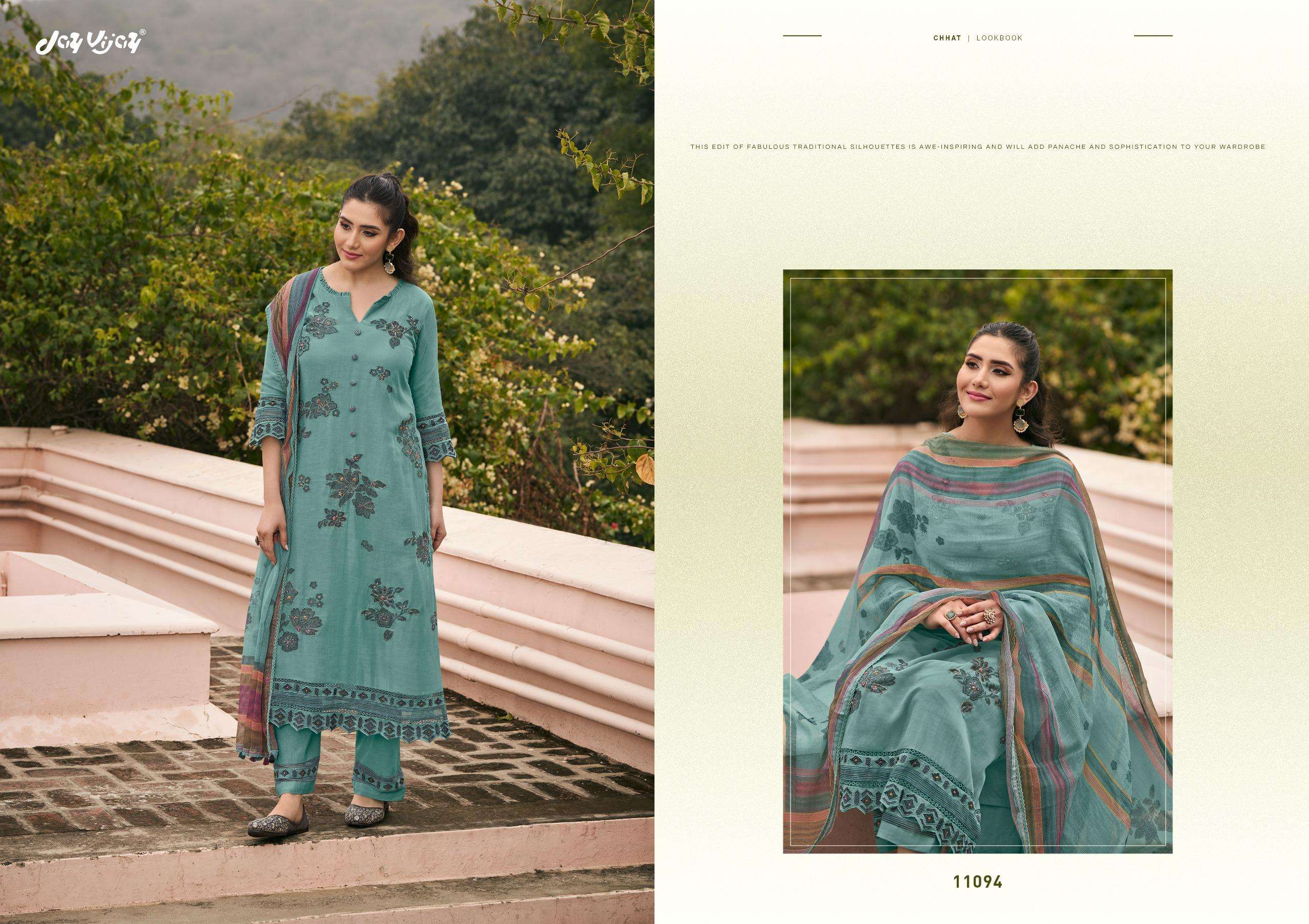 | Catalogue: | Jay Vijay Chhat 11091 11096 Premium Malai Chanderi Jacquard Salwar Suit |