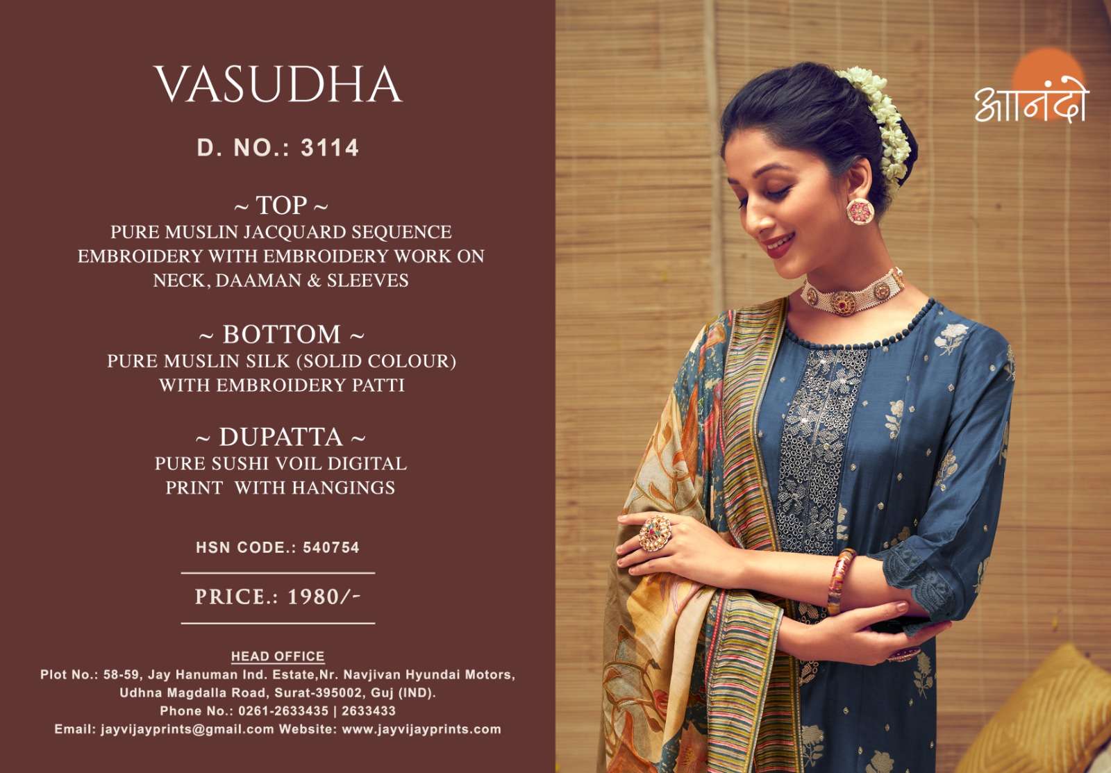 Jay Vijay Present Festival Special Vasuda Catalog Designer Of Pure Muslin Jacquard Sequence Embroidery Salwar suit Dupatta Set