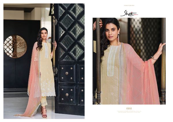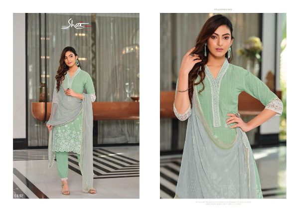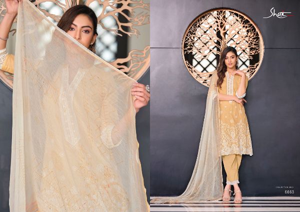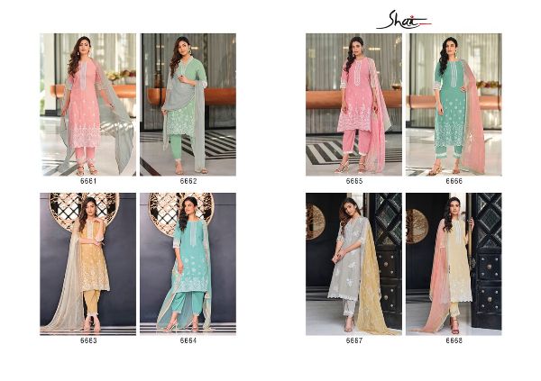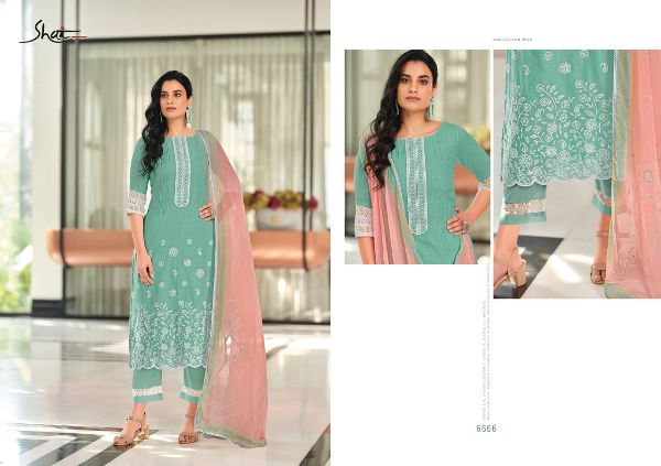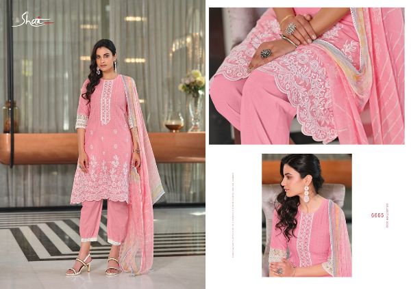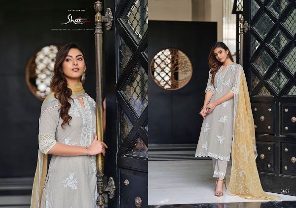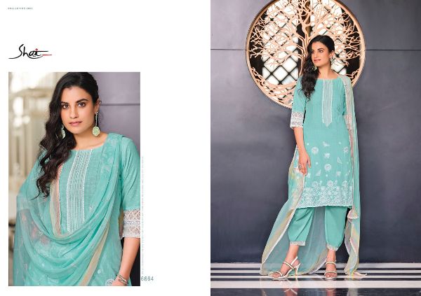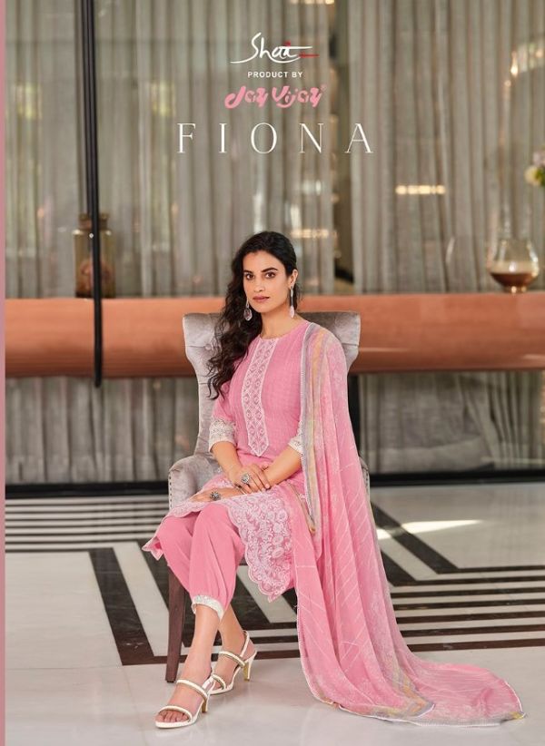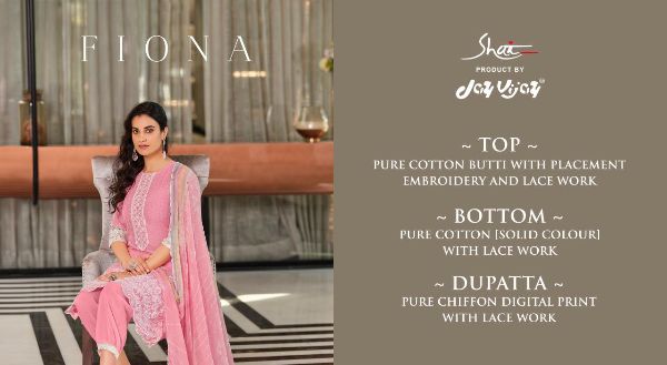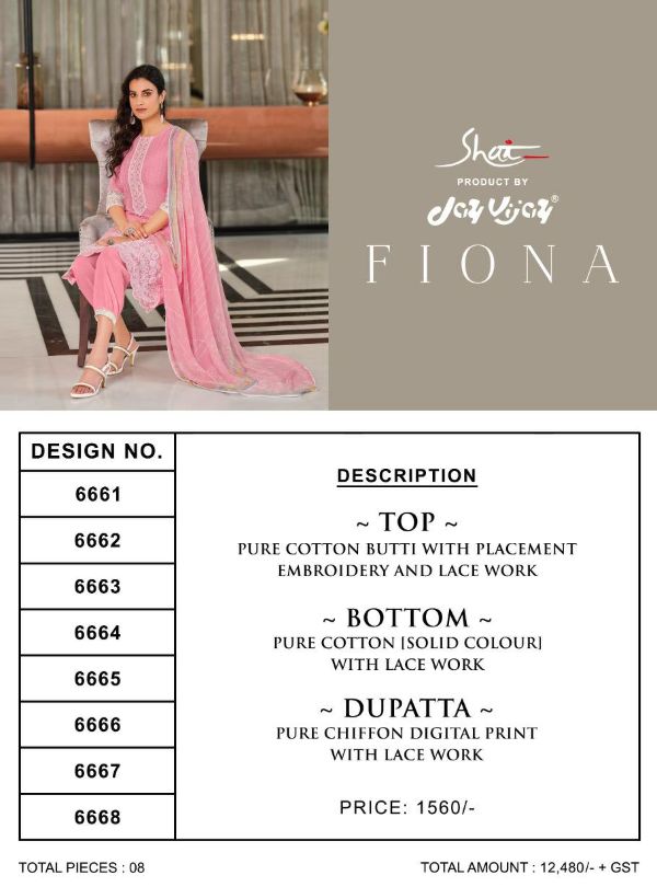 Jay Vijay Presents Fiona 6661-6668 Series Pure Cotton With Embroidery And Lace Work Salwar Suit Collection