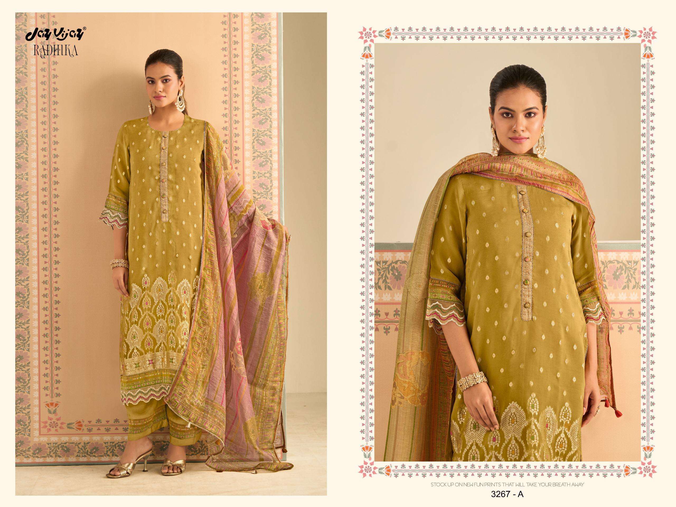 | Catalogue: | JAY VIJAY RADHIKA 3267 PURE PREMIUM ORGANZA JACQUARD & EMBROIDERED SUIT |