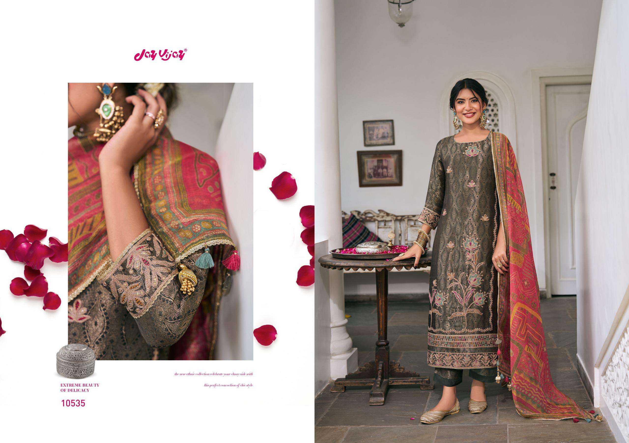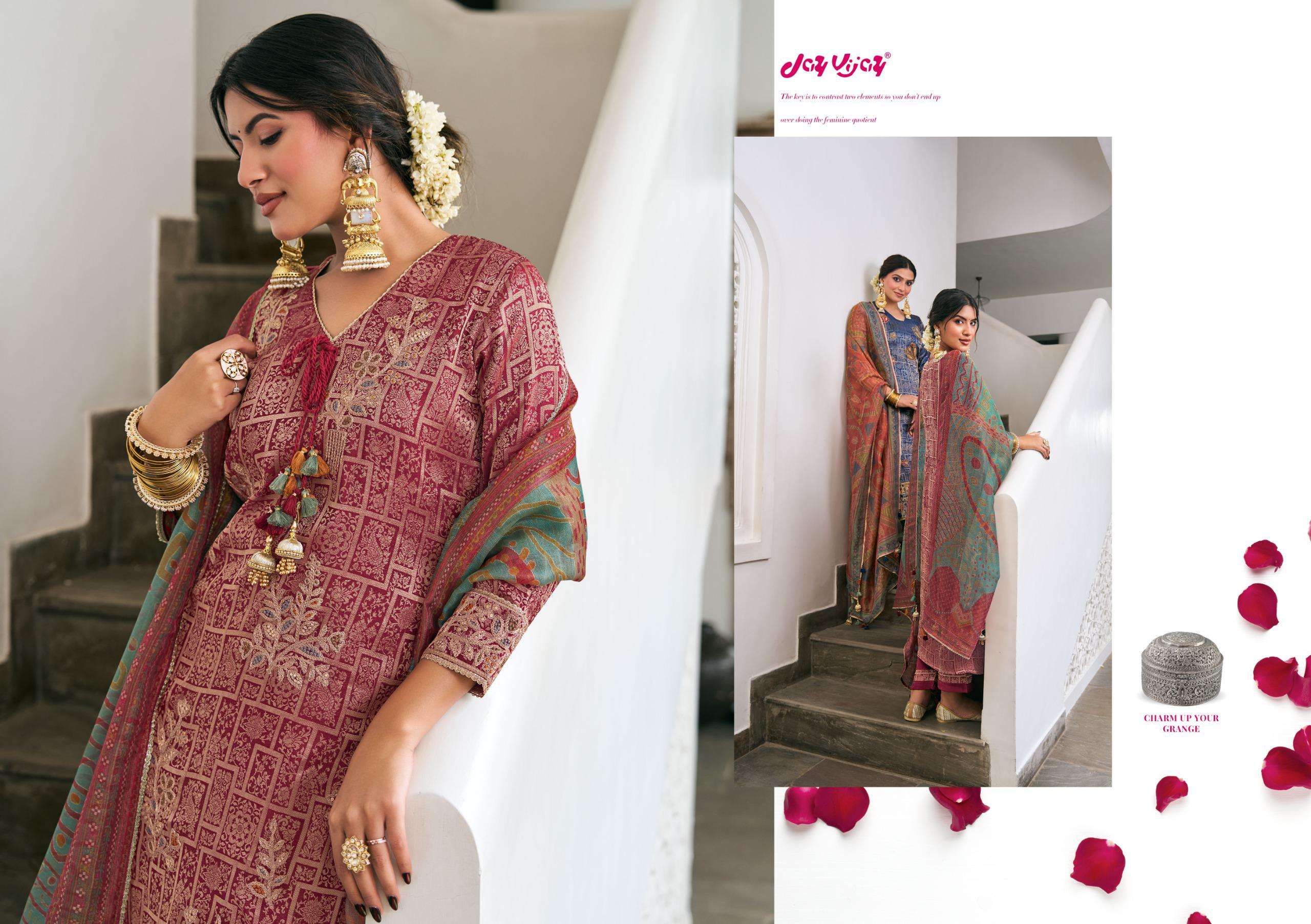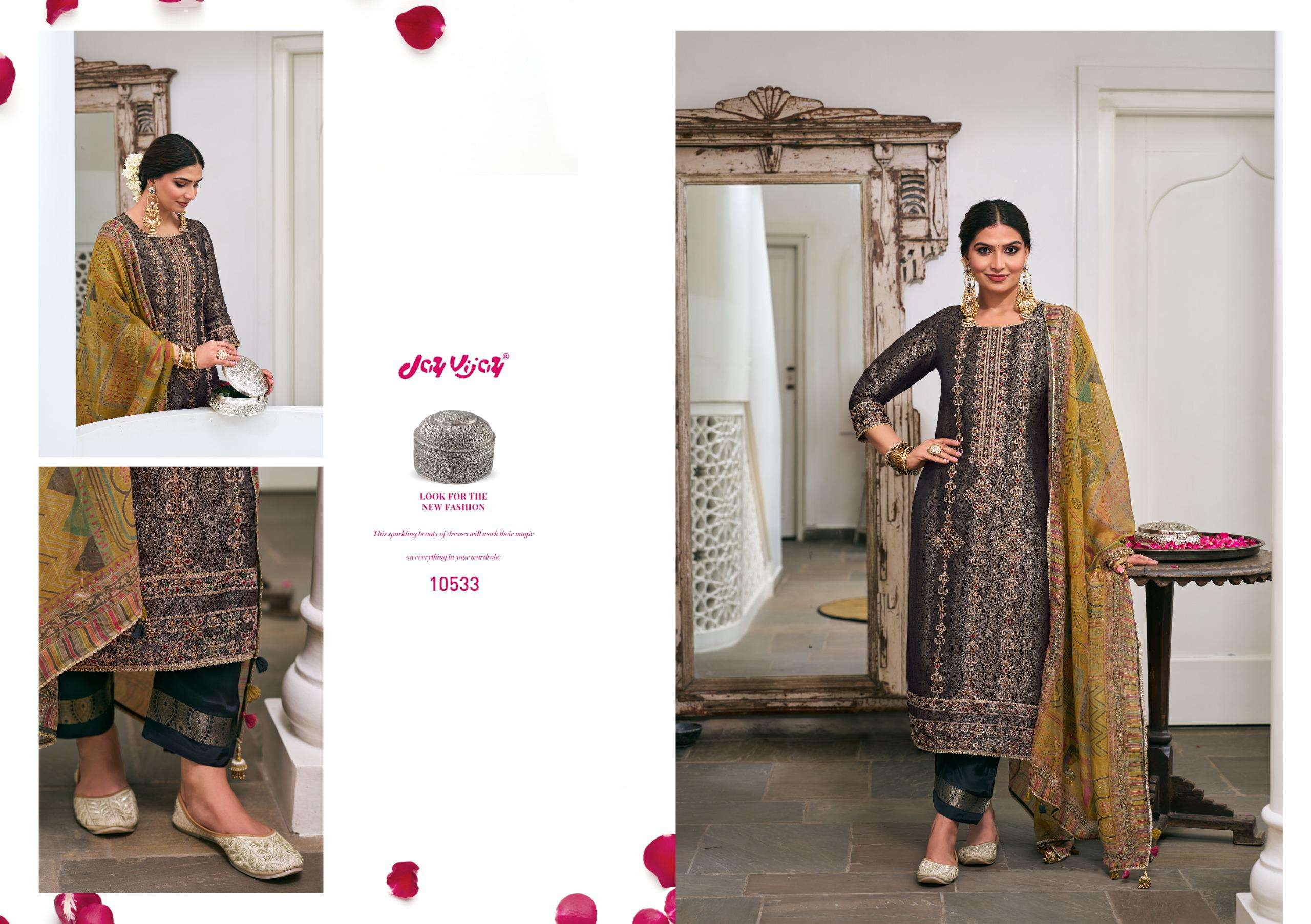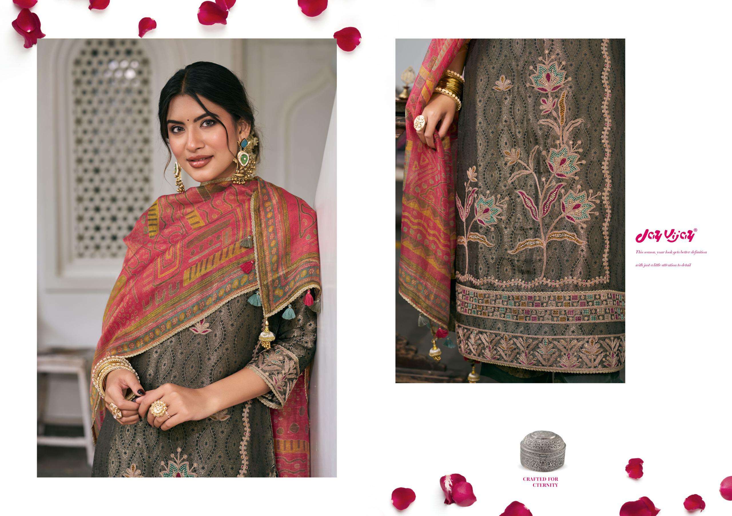 Catalogue: | JAY VIJAY RANIBAAGH PURE SILK BROCADE JACQUARD SUIT WITH EMBROIDERY |