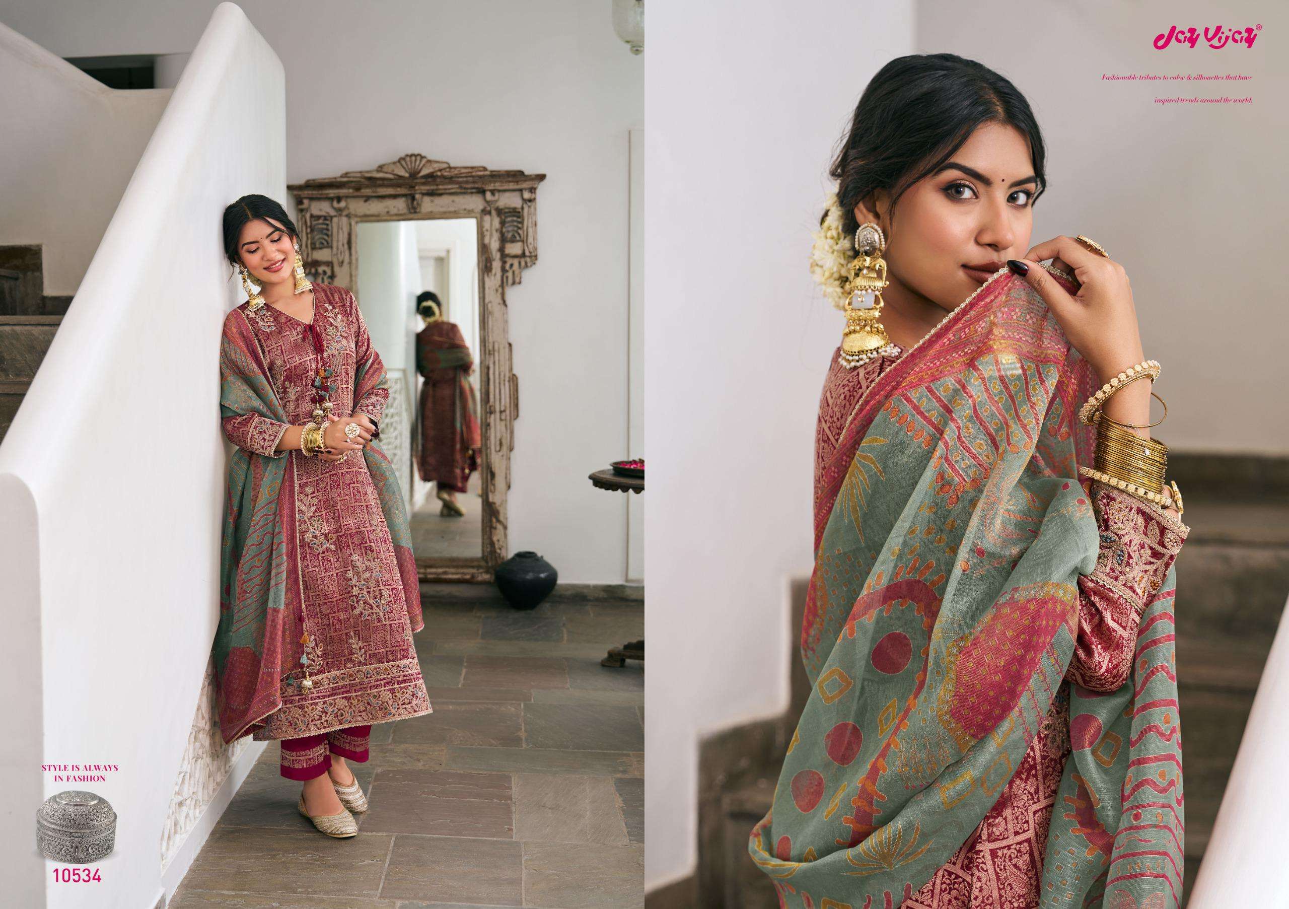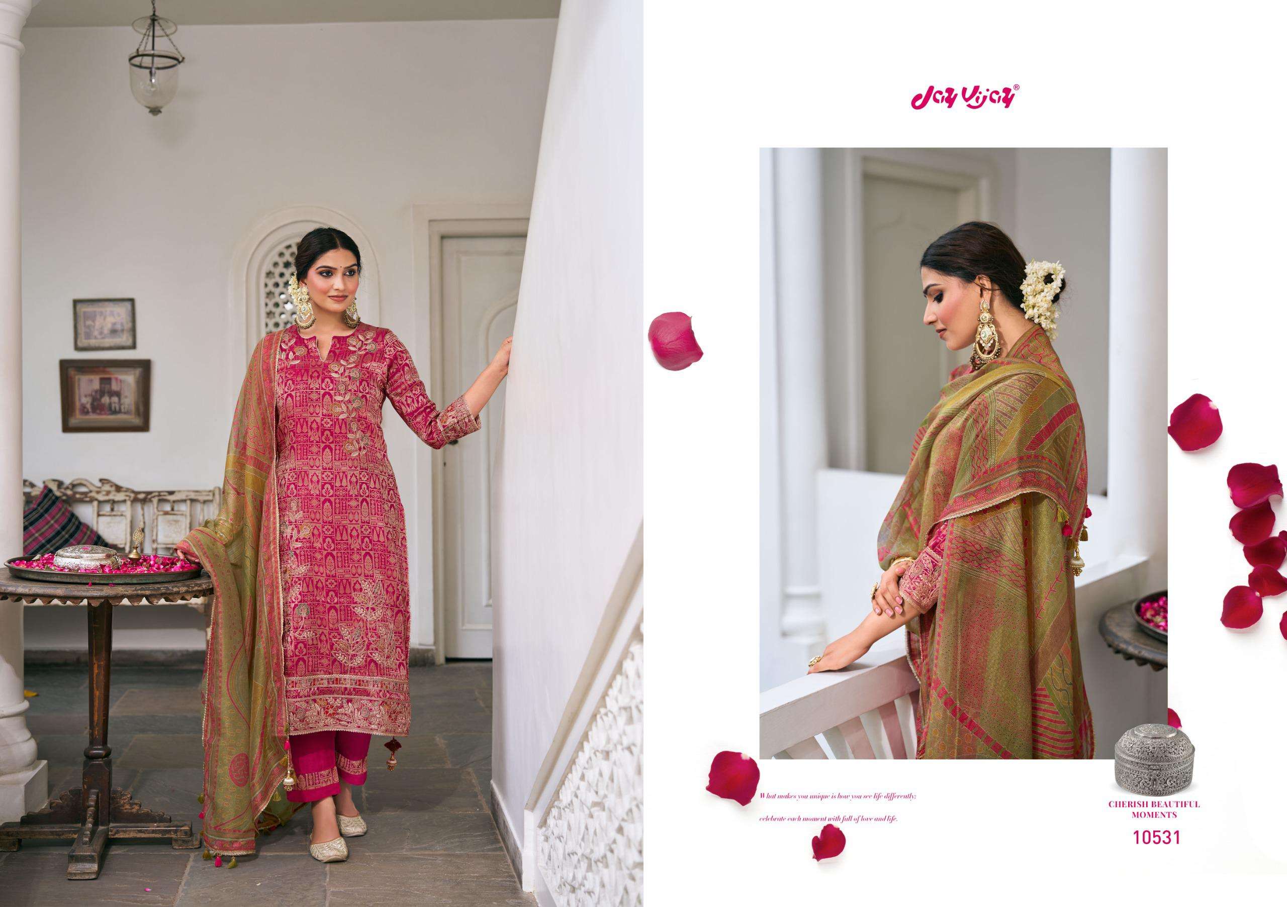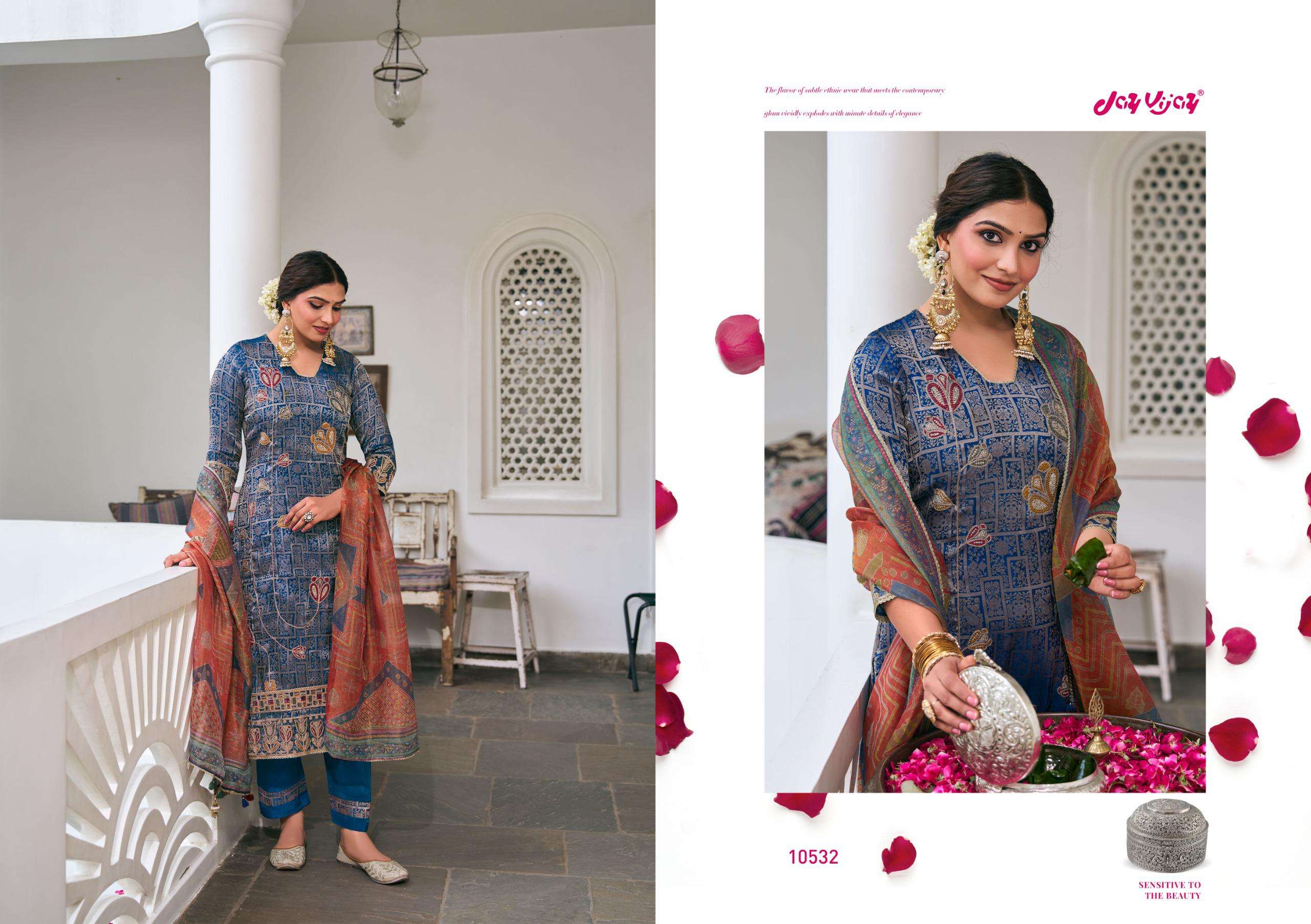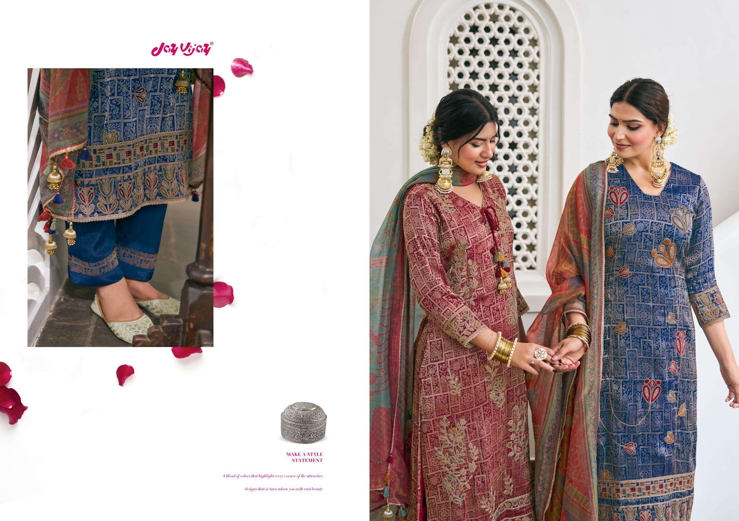 Catalogue: | JAY VIJAY RANIBAAGH PURE SILK BROCADE JACQUARD SUIT WITH EMBROIDERY |