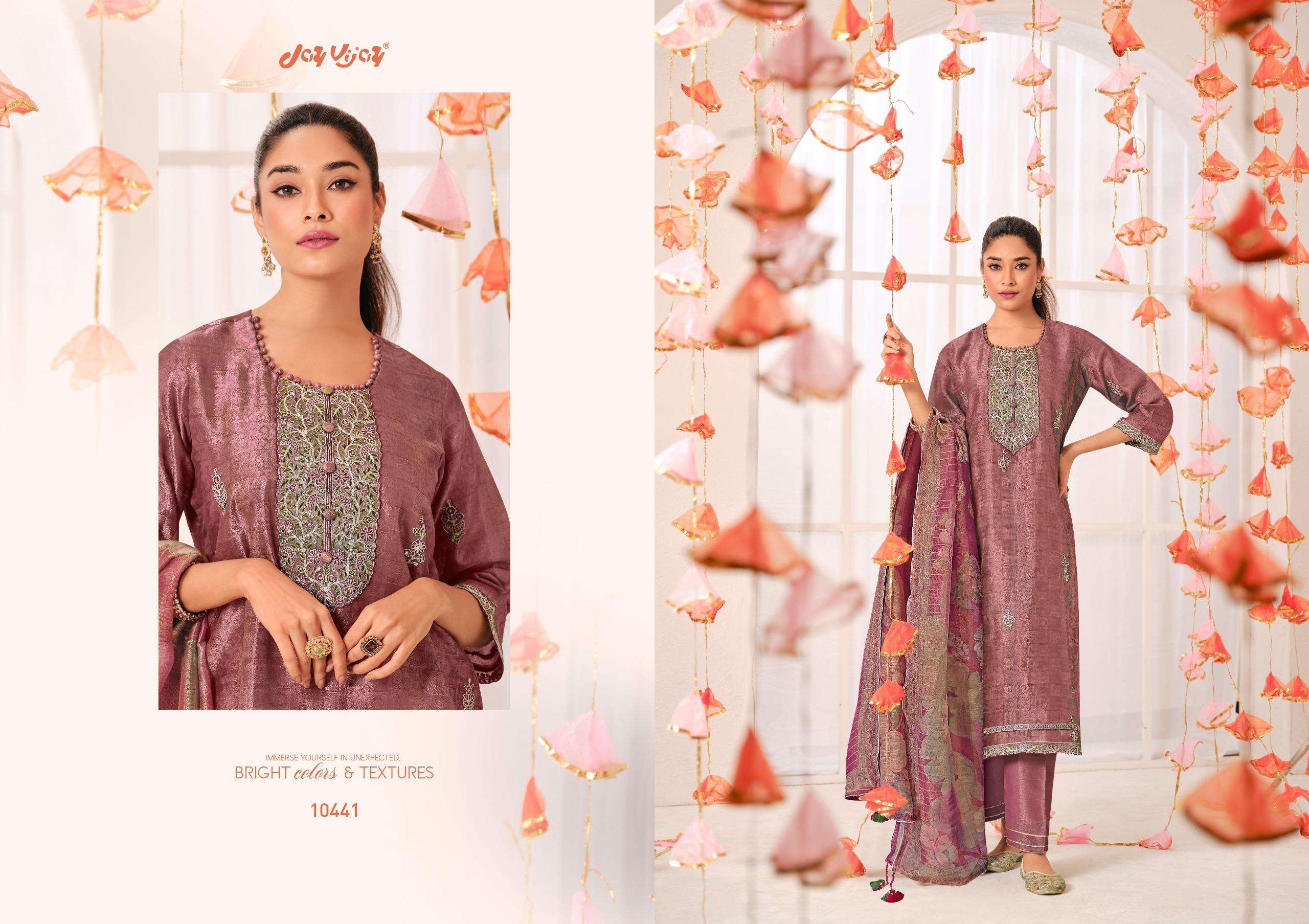 | Catalogue: | JAY VIJAY SUHARA PURE SHIMMER JACQUARD SILK EMBROIDERED SUIT |