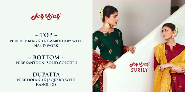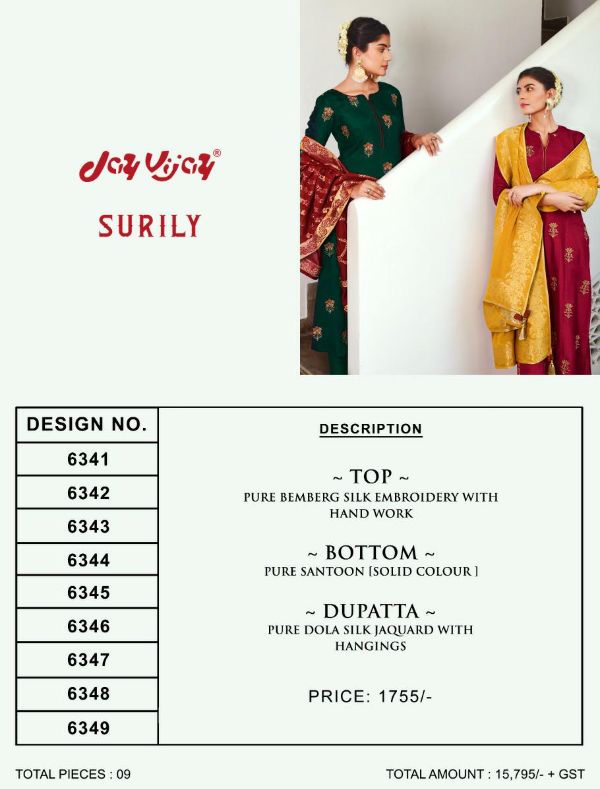 Jayvijay Presents Surily 6341 - 6349 Series Pure Silk With Embroidery And Hand Work Fancy Salwar Suit Collection