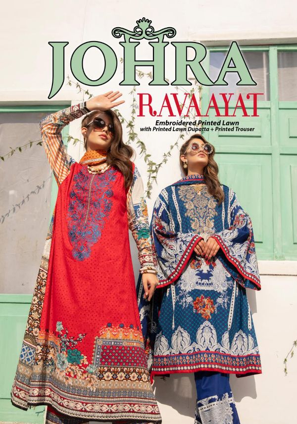 Johra Ravaayat Dn Jr -156,157,158,159,160,161,162,163,164,165 Series Embroidered Lawn Original Pakistani Collection