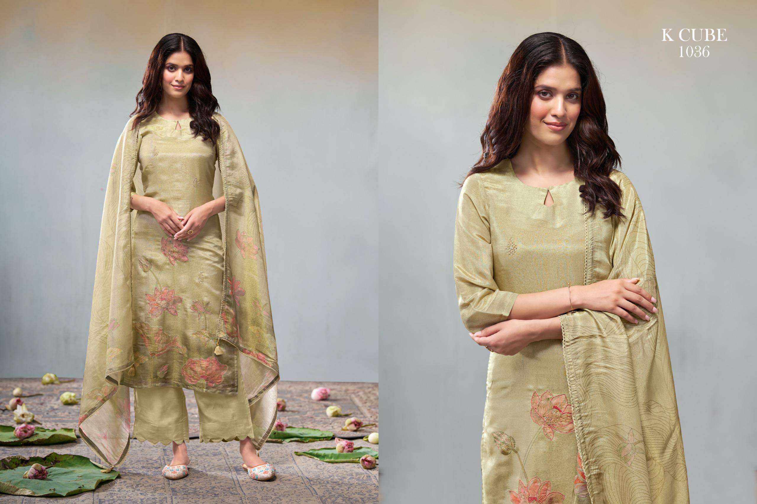 Catalogue: | K CUBE Presents Textilemela Simmer Digital Printed Suit with Hand Work |