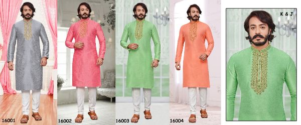 K & J Presents D-24 16001 - 16004 Series Fancy Silk With Beautiful Designer Work Mens Wear Collection Wholesale Price