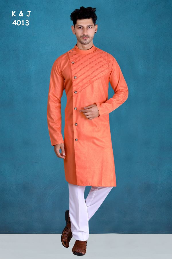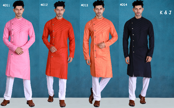 K & J Presents D-5 4011 - 4014 Series Pure Cotton With Fancy Look Kurta Pajama Mens Wear Collection Diwali Special