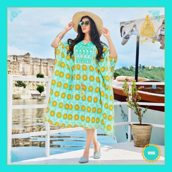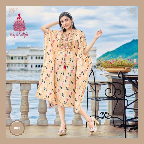 Kajal Style Presents Cocktail Vol-1 1001-1010 Series Heavy Cotton Fancy Embroidery Work Kaftan Collection