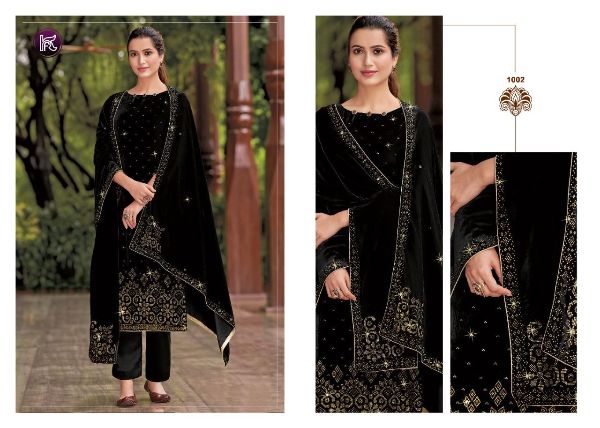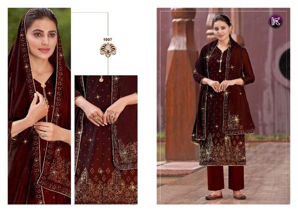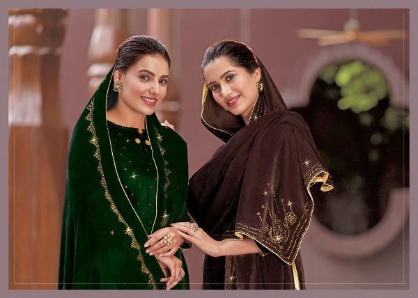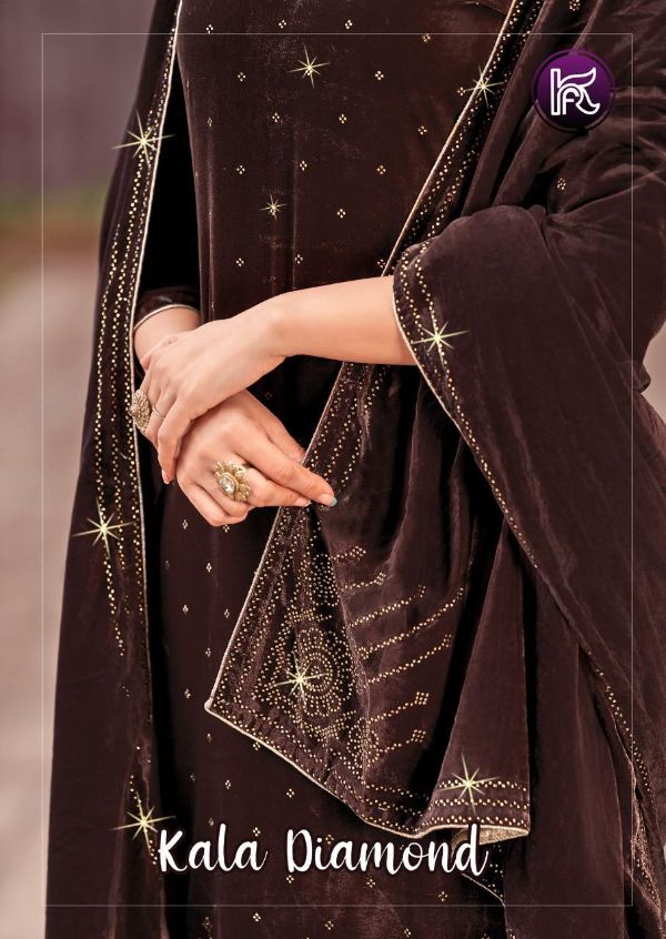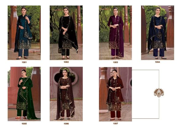 Kala Fashion Presents Kala Diamond 1001 - 1007 Series Beautiful Velvet With Fancy Swaroski Work Fancy Salwar Suit Collection