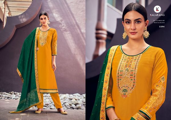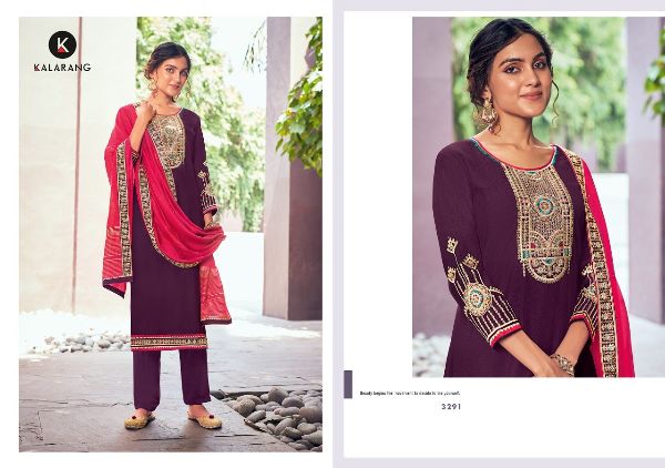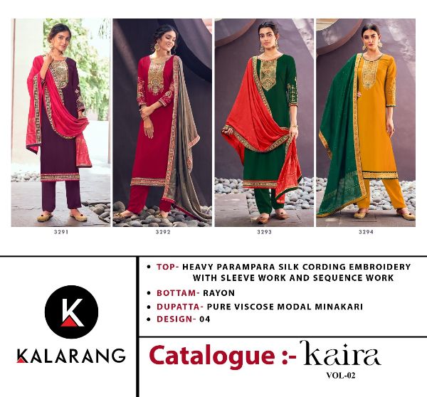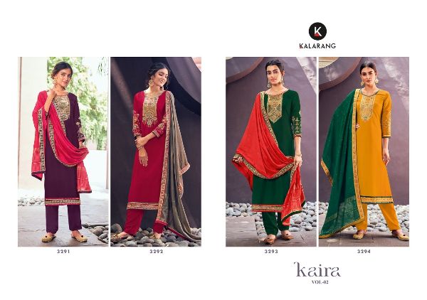 Kalarang Presents Kaira Vol-2 3291-3294 Series Heavy Silk And Embroidery And Sequence Work Salwar Suit Collection