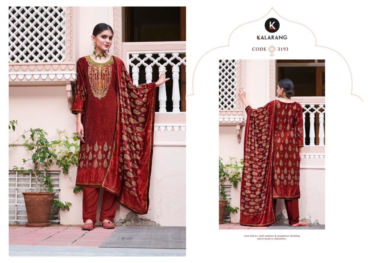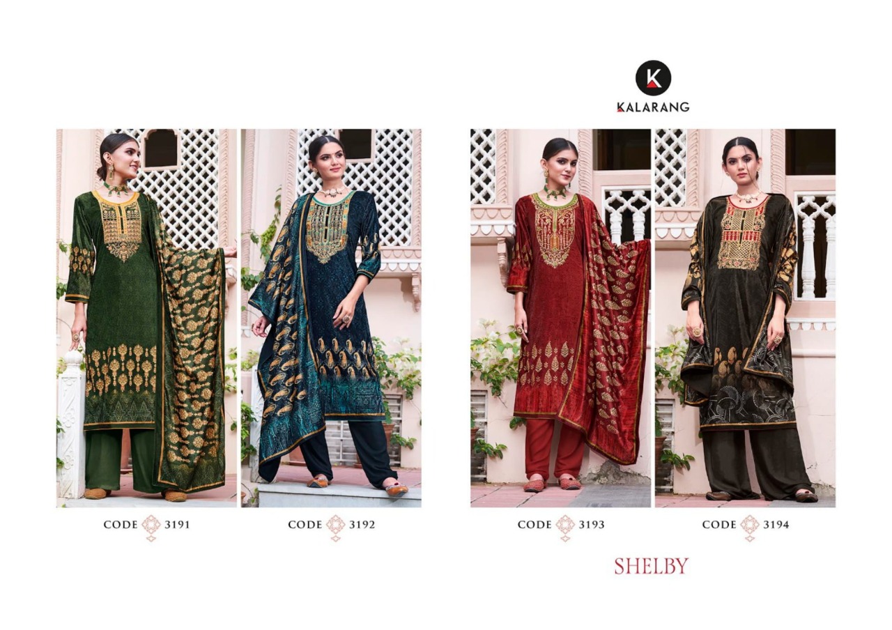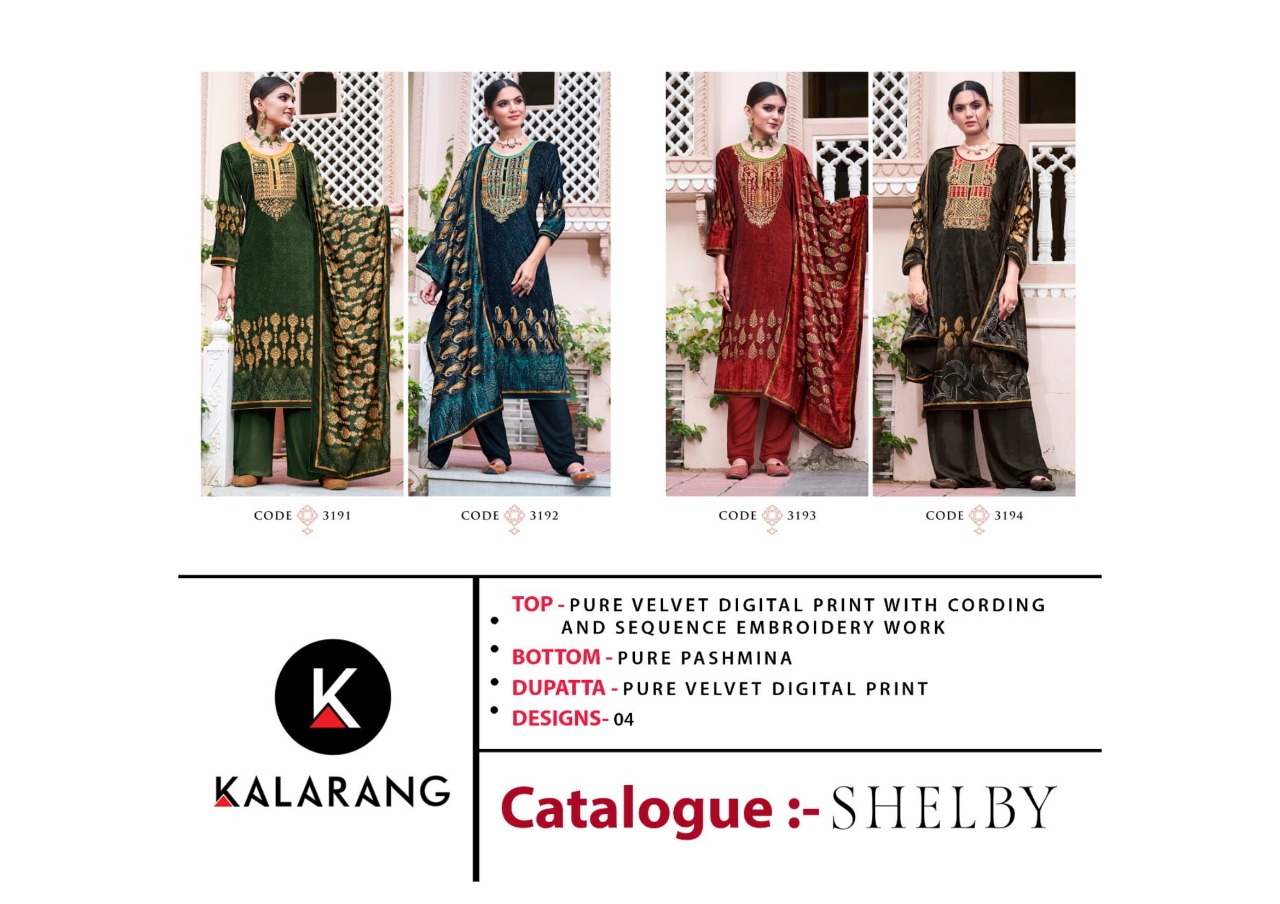 Kalarang Presents Shelby 3191 - 3194 Series Pure Velvet Digital Print With Cording And Sequence Embroidery Work Fancy Salwar Suit Collection