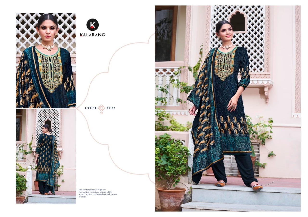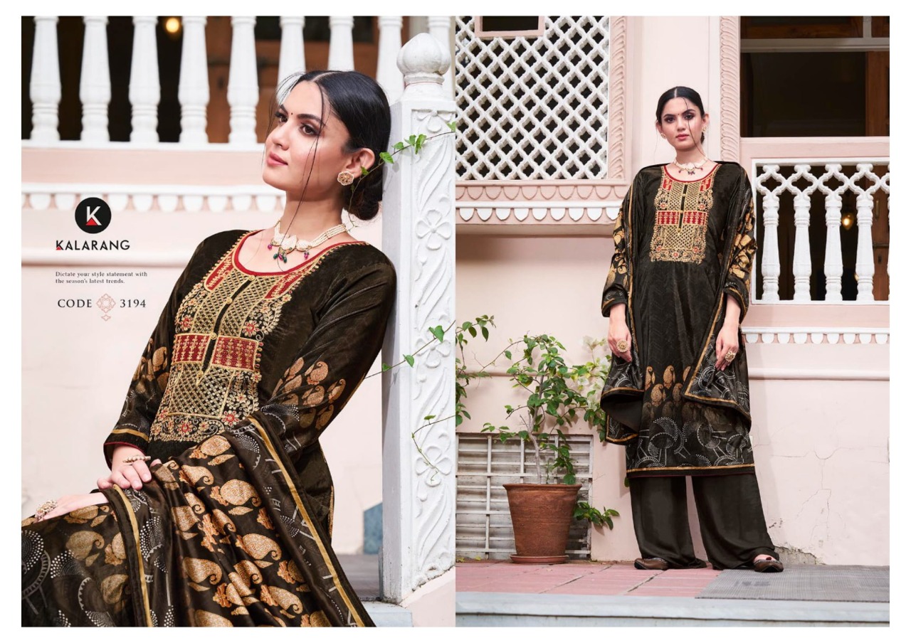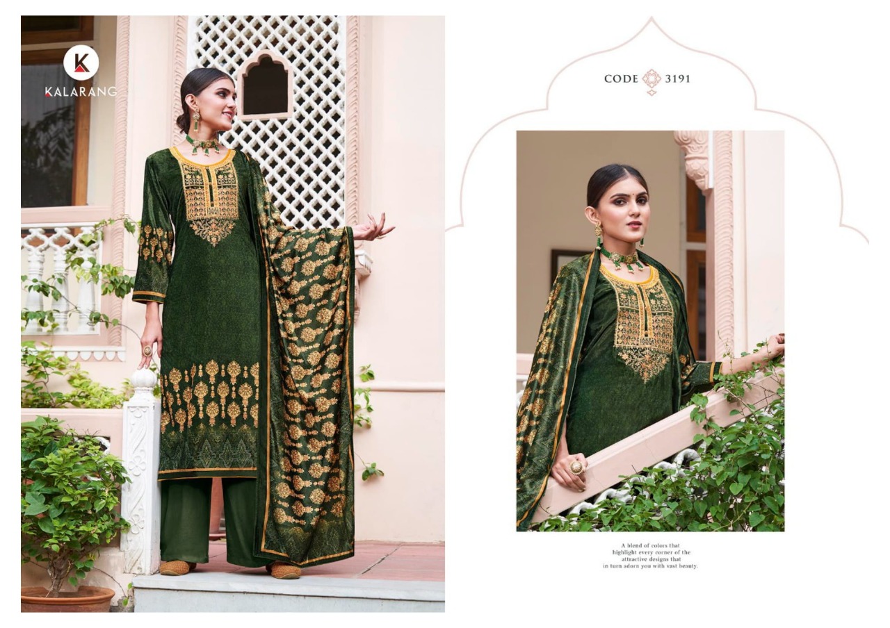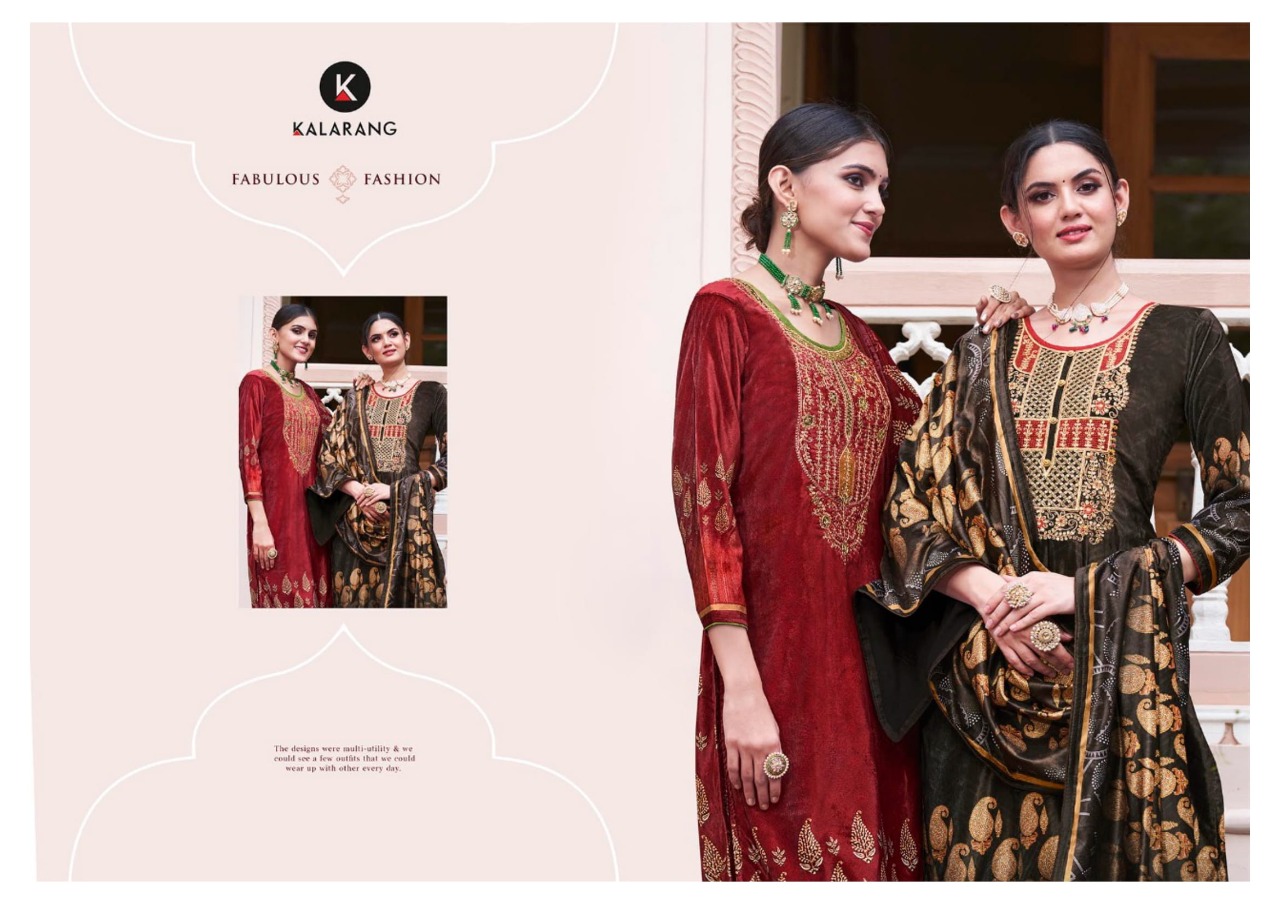 Kalarang Presents Shelby 3191 - 3194 Series Pure Velvet Digital Print With Cording And Sequence Embroidery Work Fancy Salwar Suit Collection