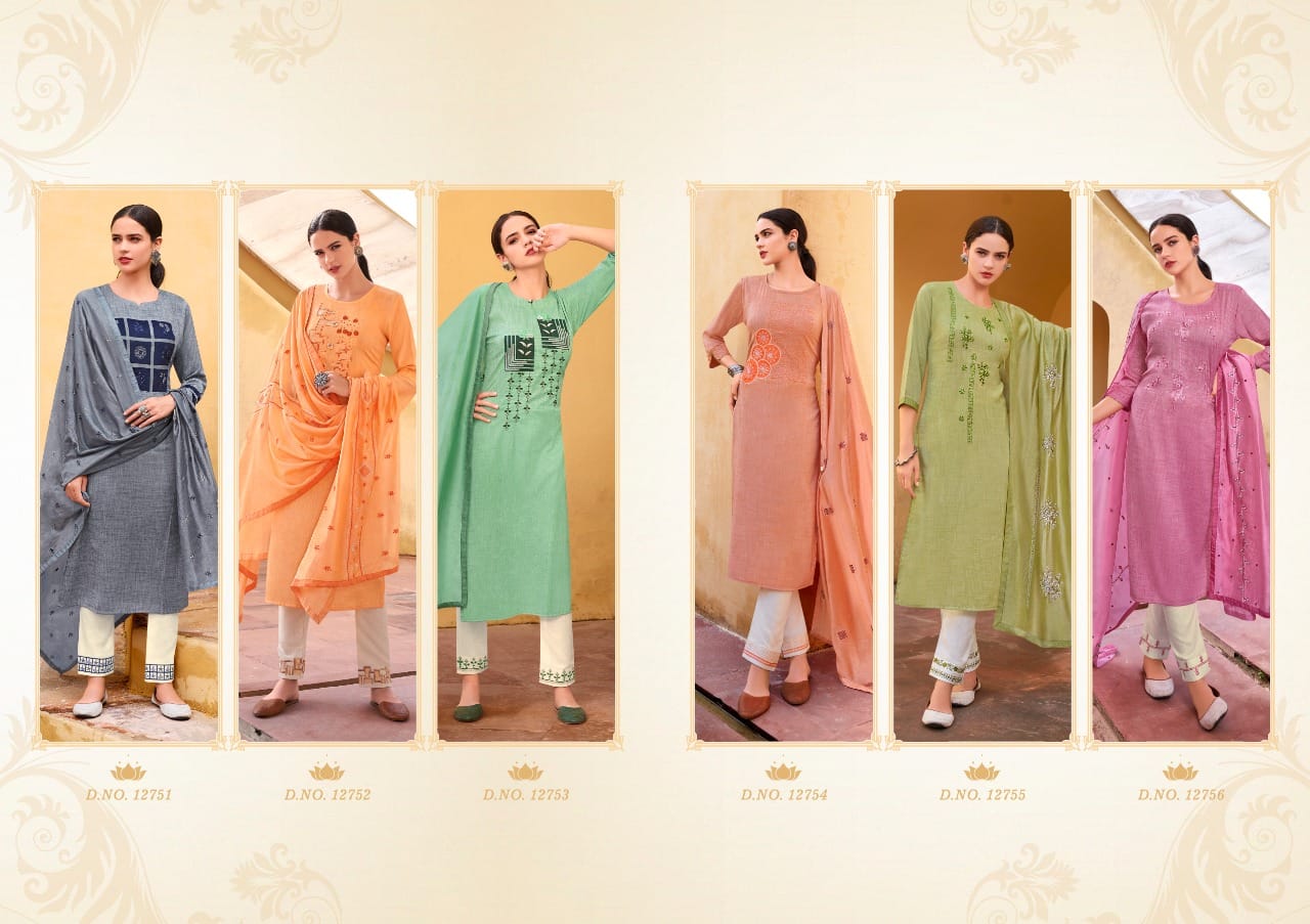 Kalaroop Presents Aagman 12751 - 12756 Series Fancy Fabric With Embroidery Work And Stone Work Fancy Salwar Kameez Collection