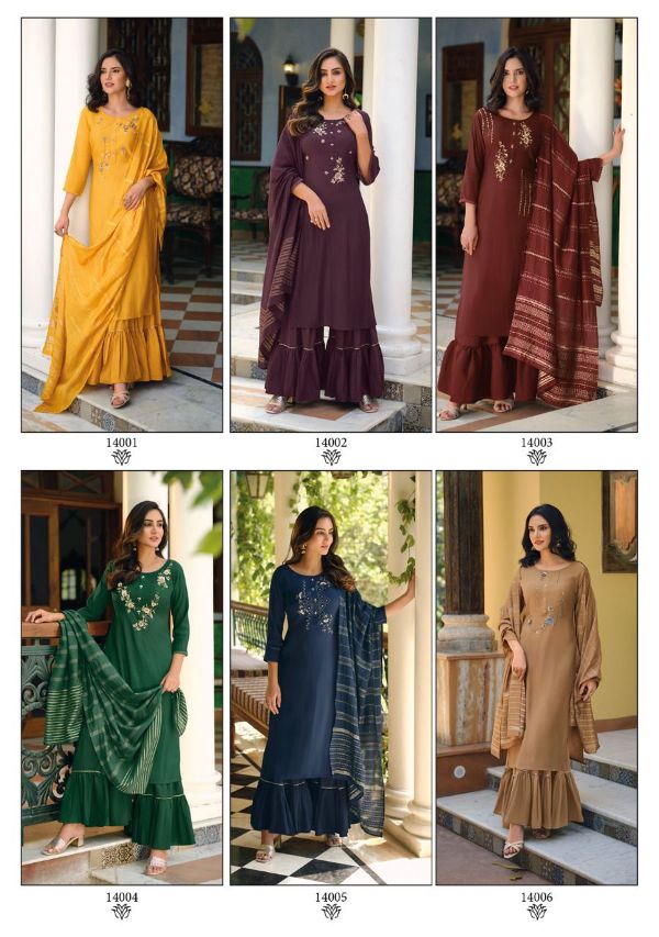 Kalki Fashion Presents Khwaab 14001-14006 Series Pure Viscose Silk Salwar Kameez Collection