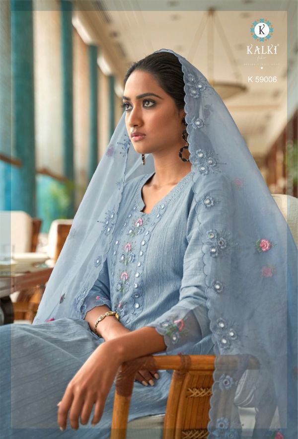 Kalki Fashion Presents Pakizaa K59001-k59006 Series Pure Cotton With Thread And Mirror Work Salwar Kameez Collection