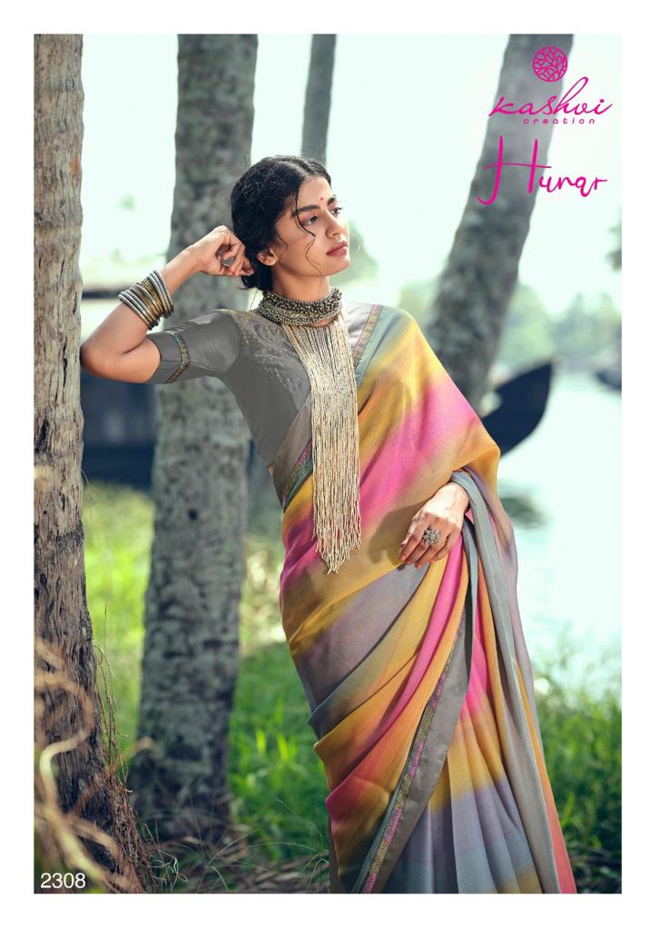 Kashvi Creation Present Hunar Series 2301 To 2310 Moss Chiffon Party Wear Women Designer Saree Collection