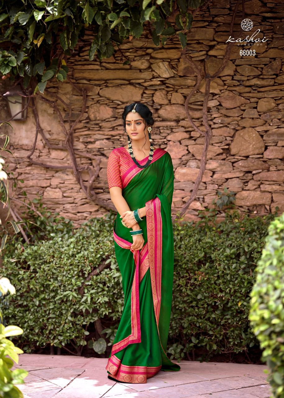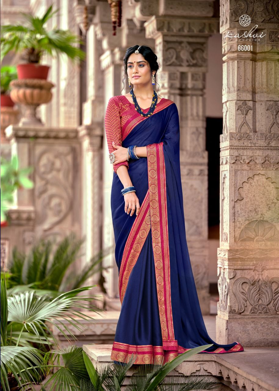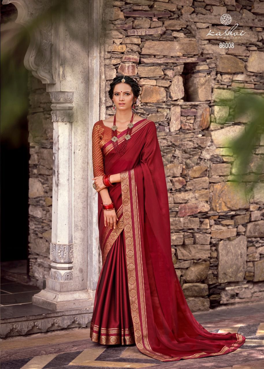 Kashvi Creation Presents Avni 66001 - 66010 Series Moss Chiffon With Fancy Lace And Heavy Blouse Fancy Party Wear Saree Collection