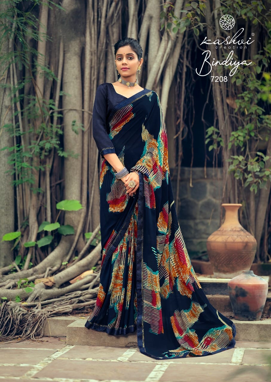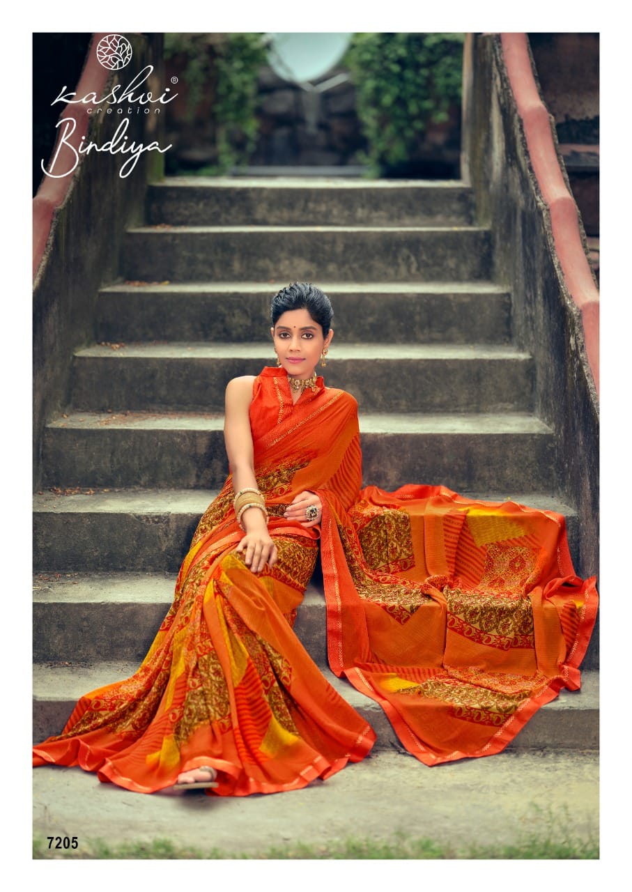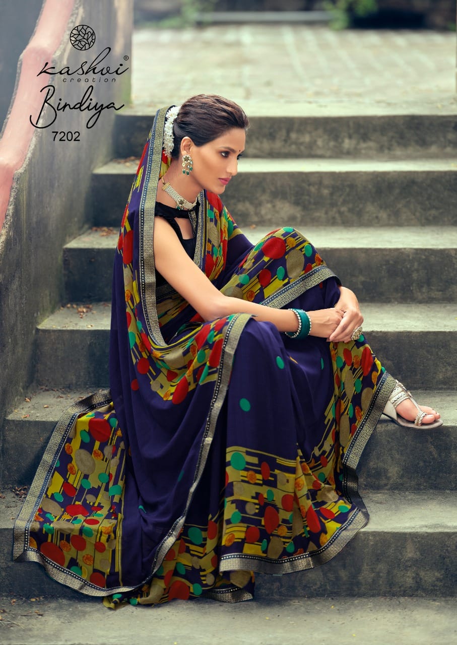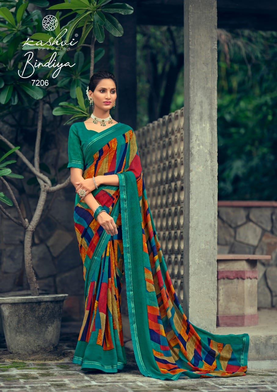 Kashvi Creation Presents Bindiya 7201 - 7210 Series Weightless With Fancy Border Fancy Ladies Casual Wear Saree Collection