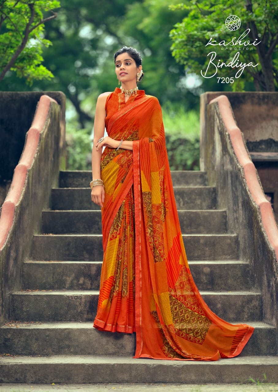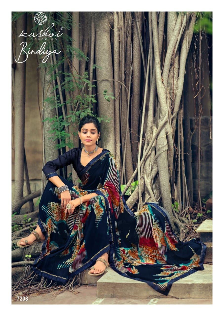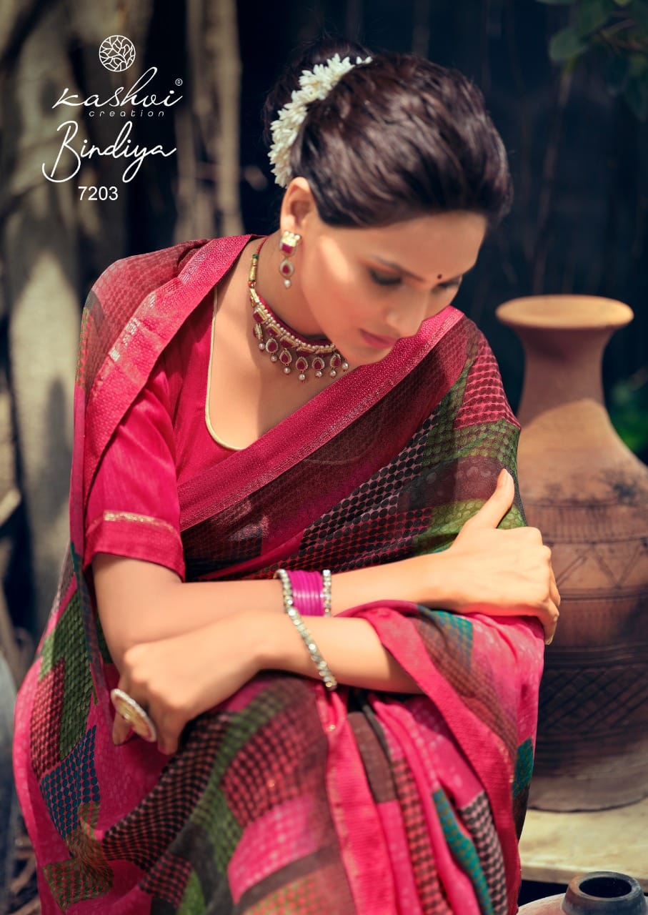 Kashvi Creation Presents Bindiya 7201 - 7210 Series Weightless With Fancy Border Fancy Ladies Casual Wear Saree Collection