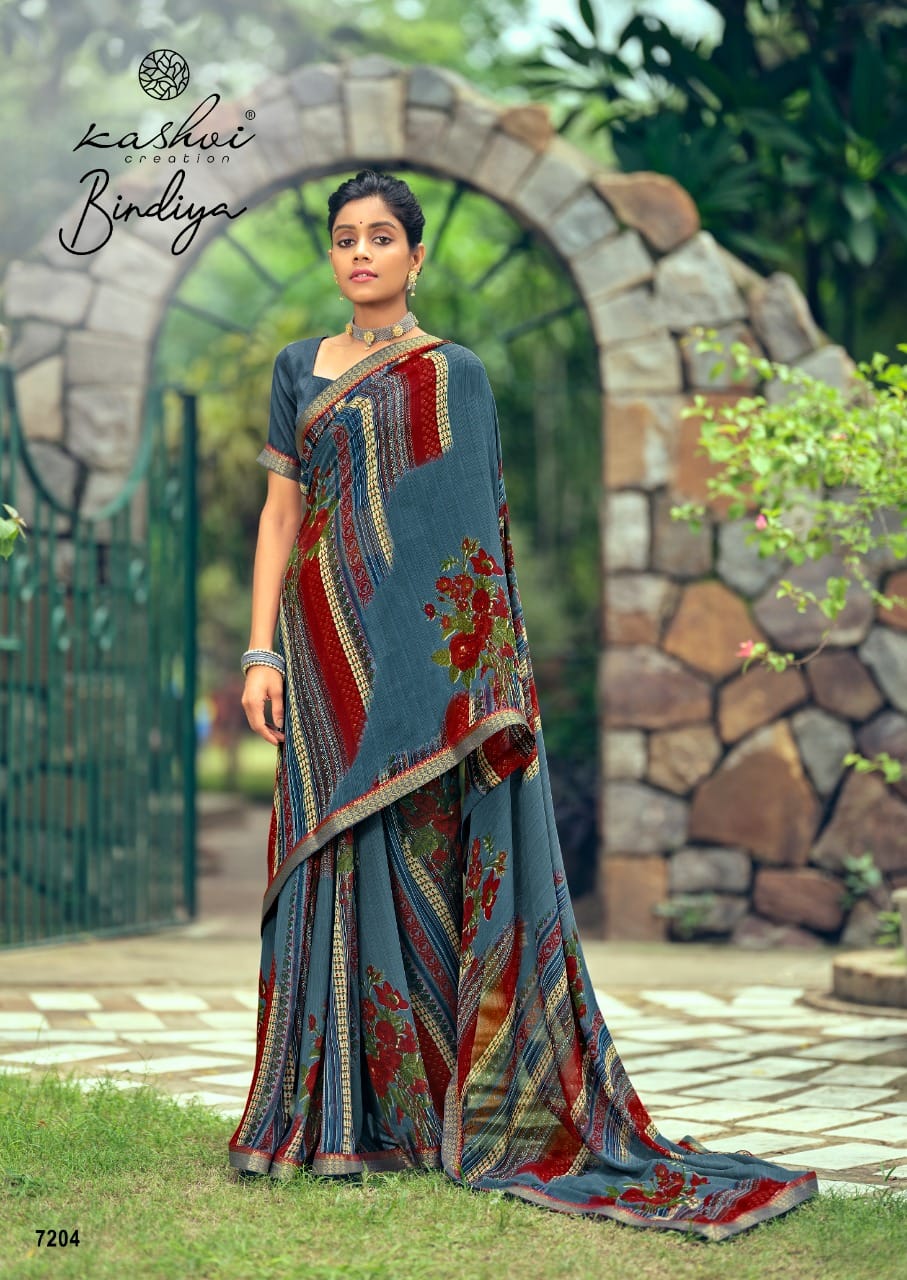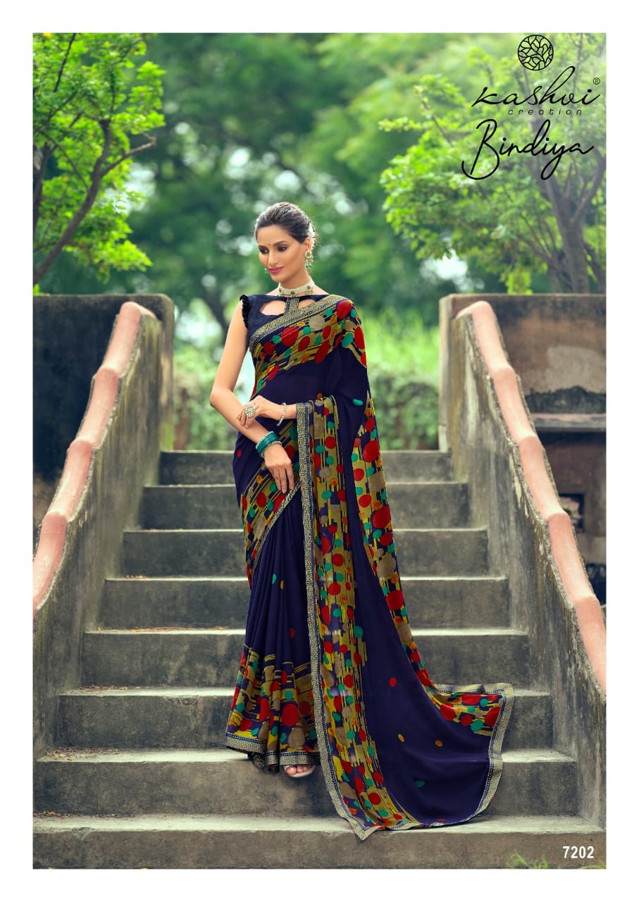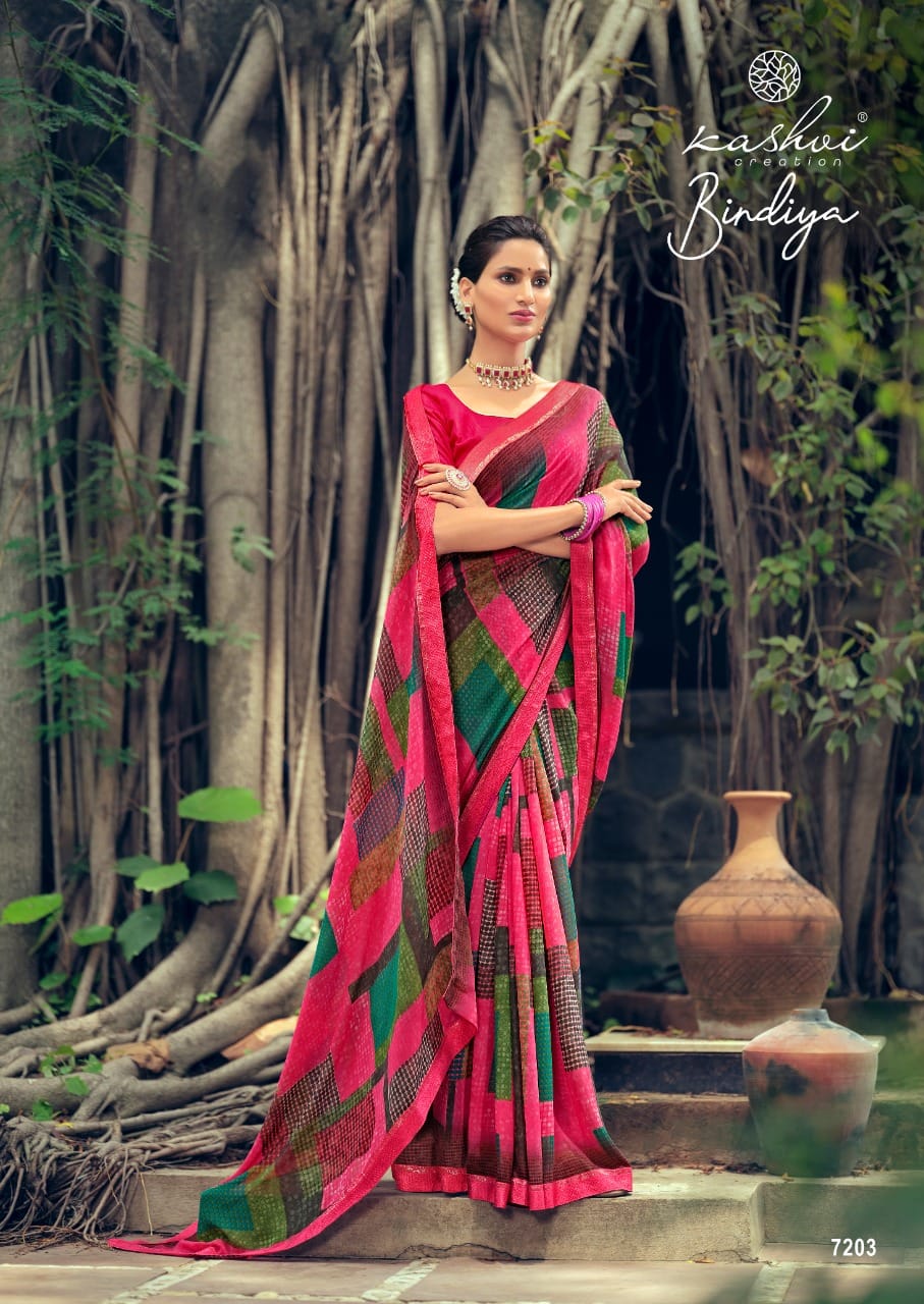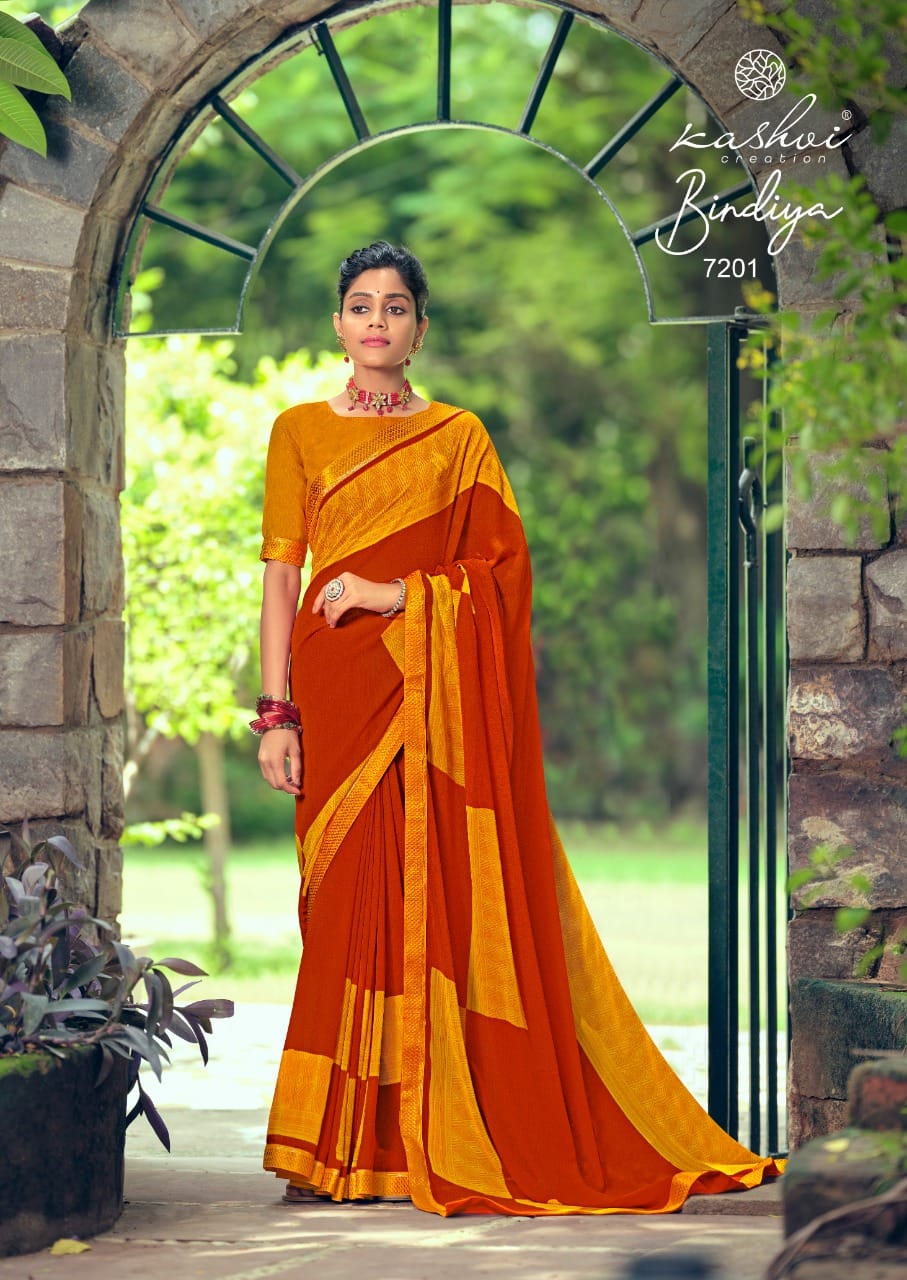 Kashvi Creation Presents Bindiya 7201 - 7210 Series Weightless With Fancy Border Fancy Ladies Casual Wear Saree Collection