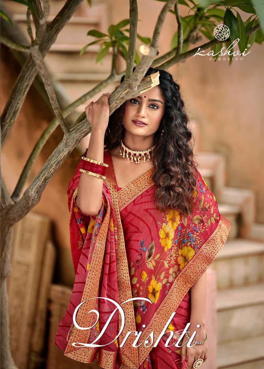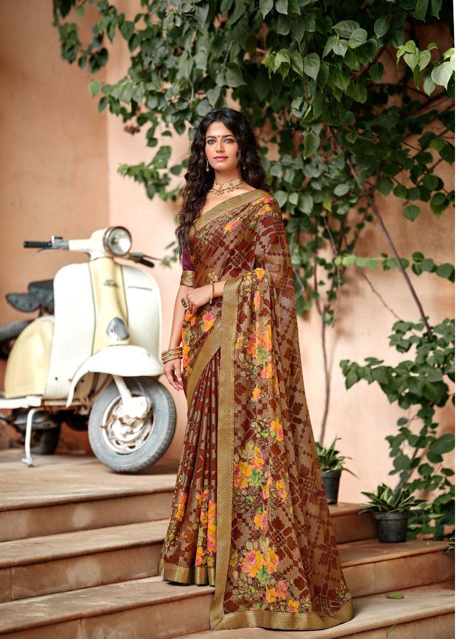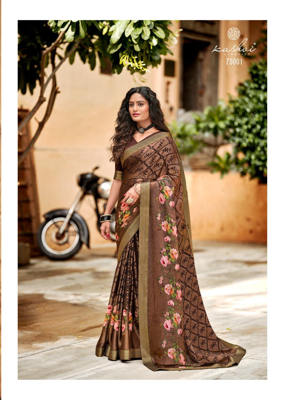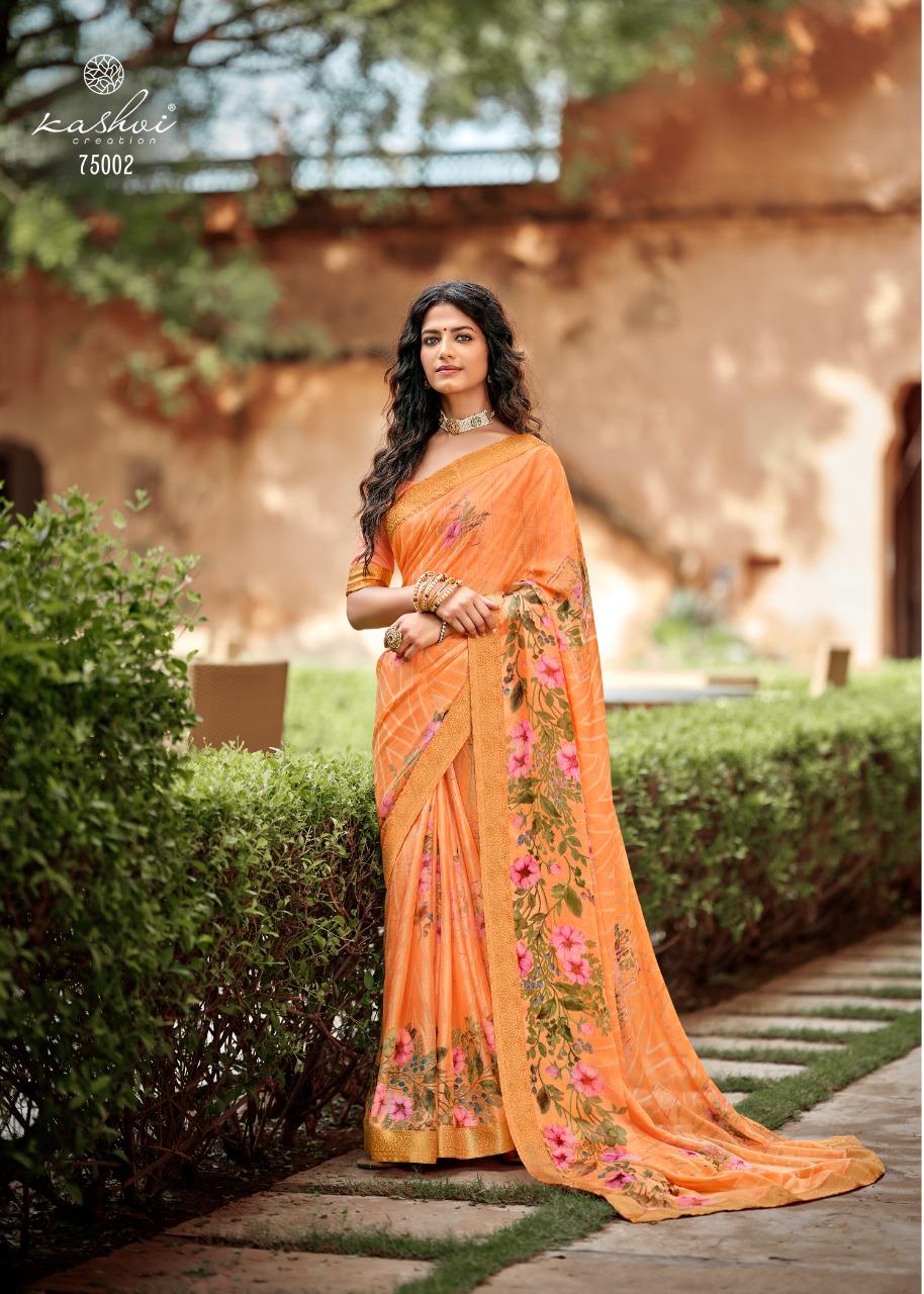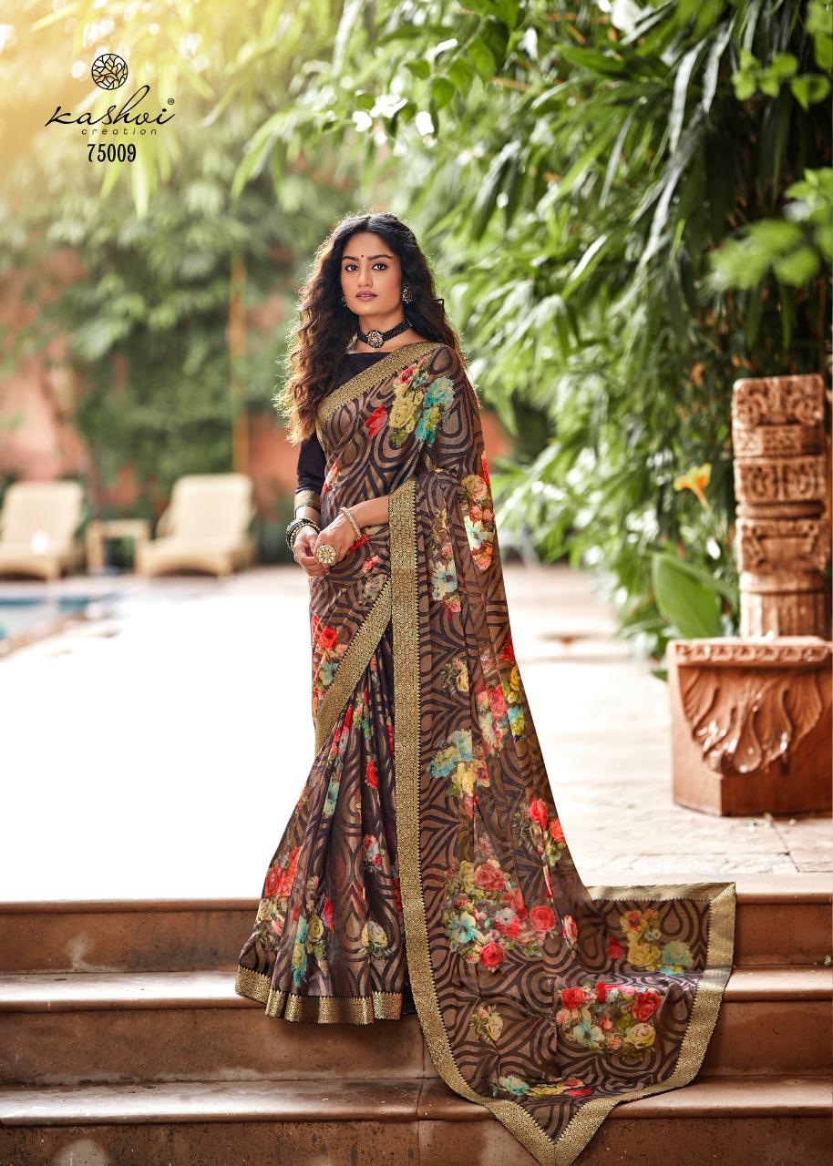 Kashvi Creation Presents Drishti 75001 - 75010 Series Chiffon Brasso With Fancy Lace Event Wear Fancy Saree Collection