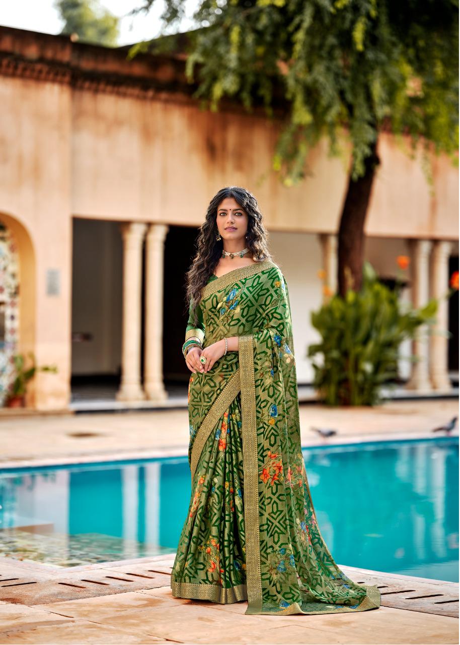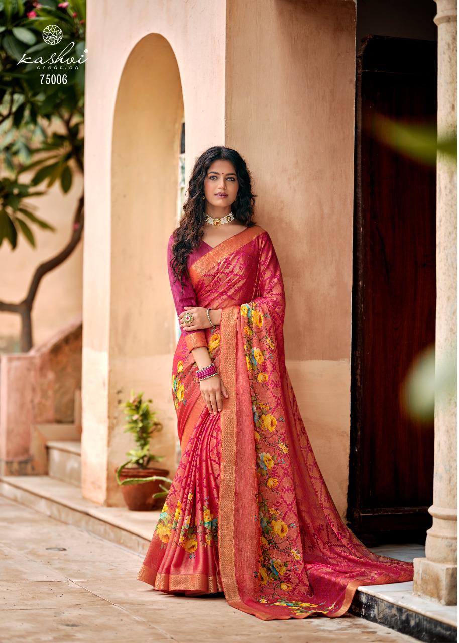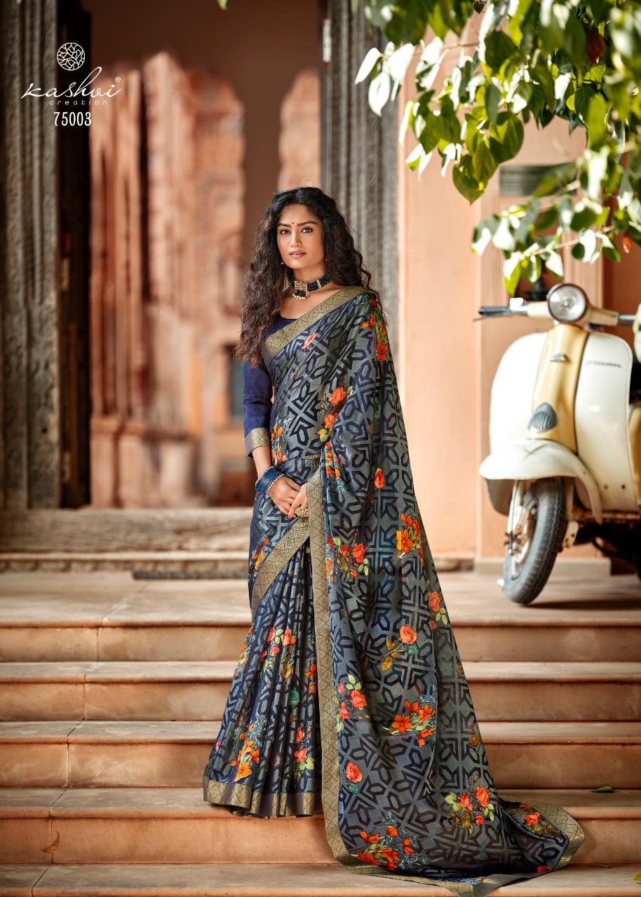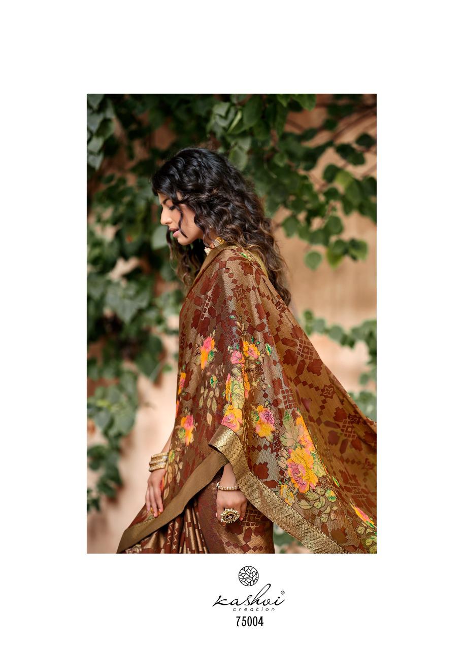 Kashvi Creation Presents Drishti 75001 - 75010 Series Chiffon Brasso With Fancy Lace Event Wear Fancy Saree Collection