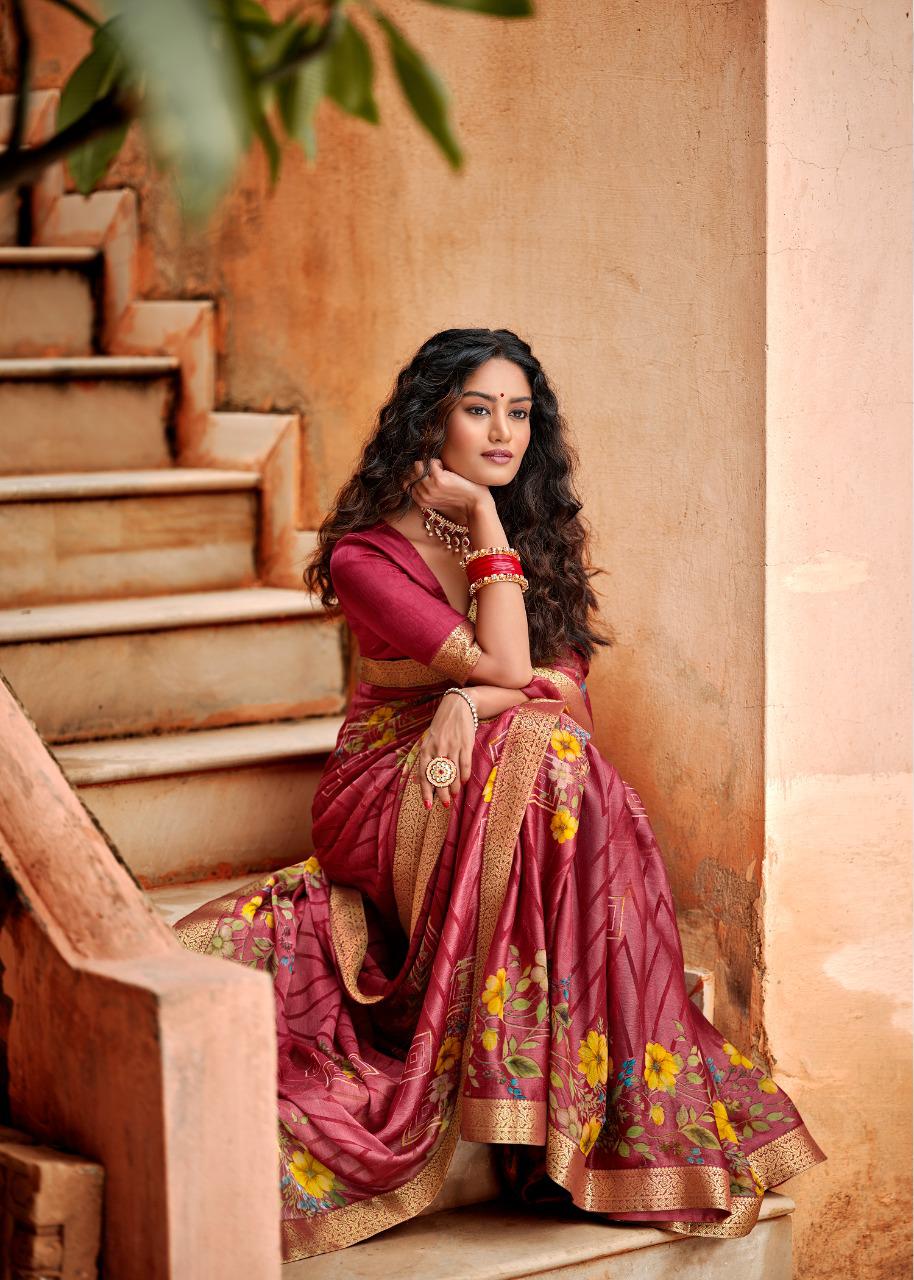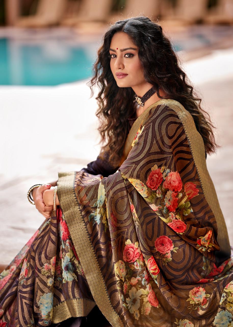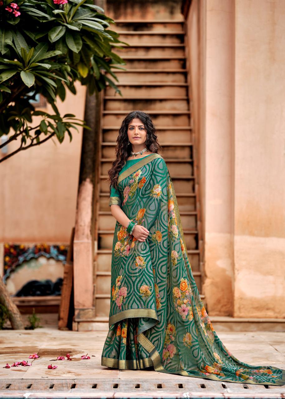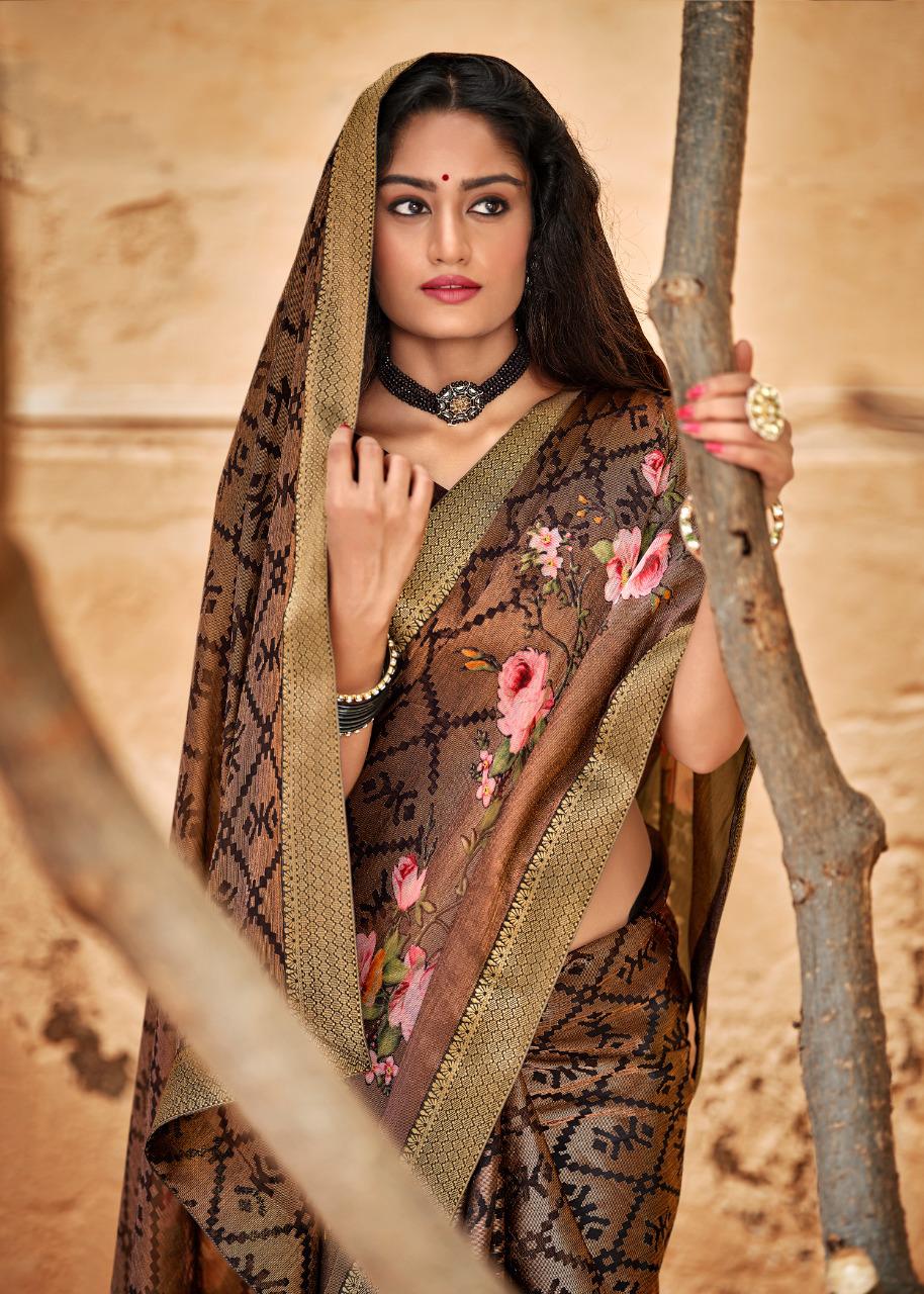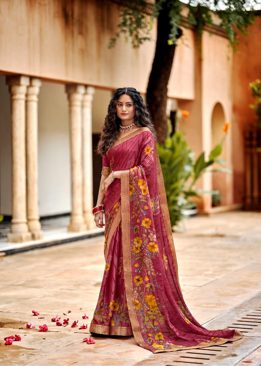 Kashvi Creation Presents Drishti 75001 - 75010 Series Chiffon Brasso With Fancy Lace Event Wear Fancy Saree Collection