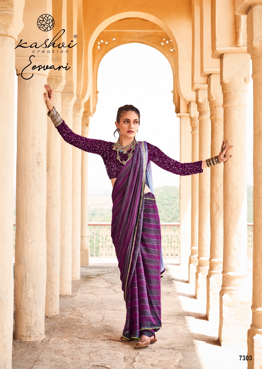 Kashvi Creation Presents Eesvari 7301 - 7310 Series Rainbow Satin Patta With Fancy Lace And Designer Blouse Party Wear Saree Collection