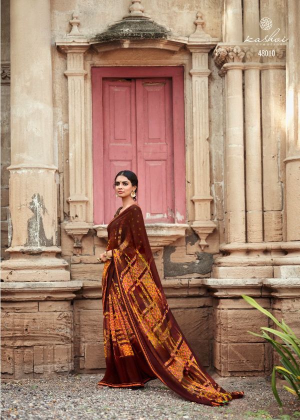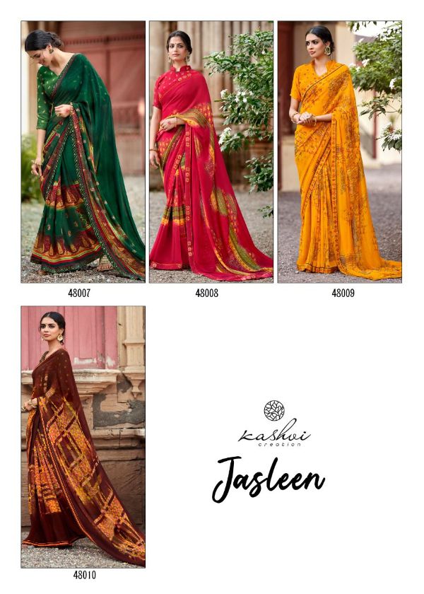 Kashvi Creation Presents Jaslin 48001 - 48010 Series Georgette With Beautiful Fancy Lace Broder Casual Wear Saree Collection
