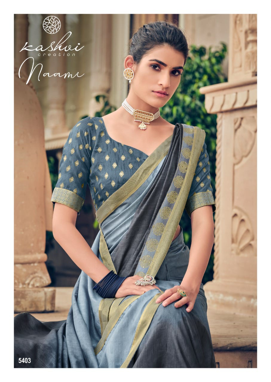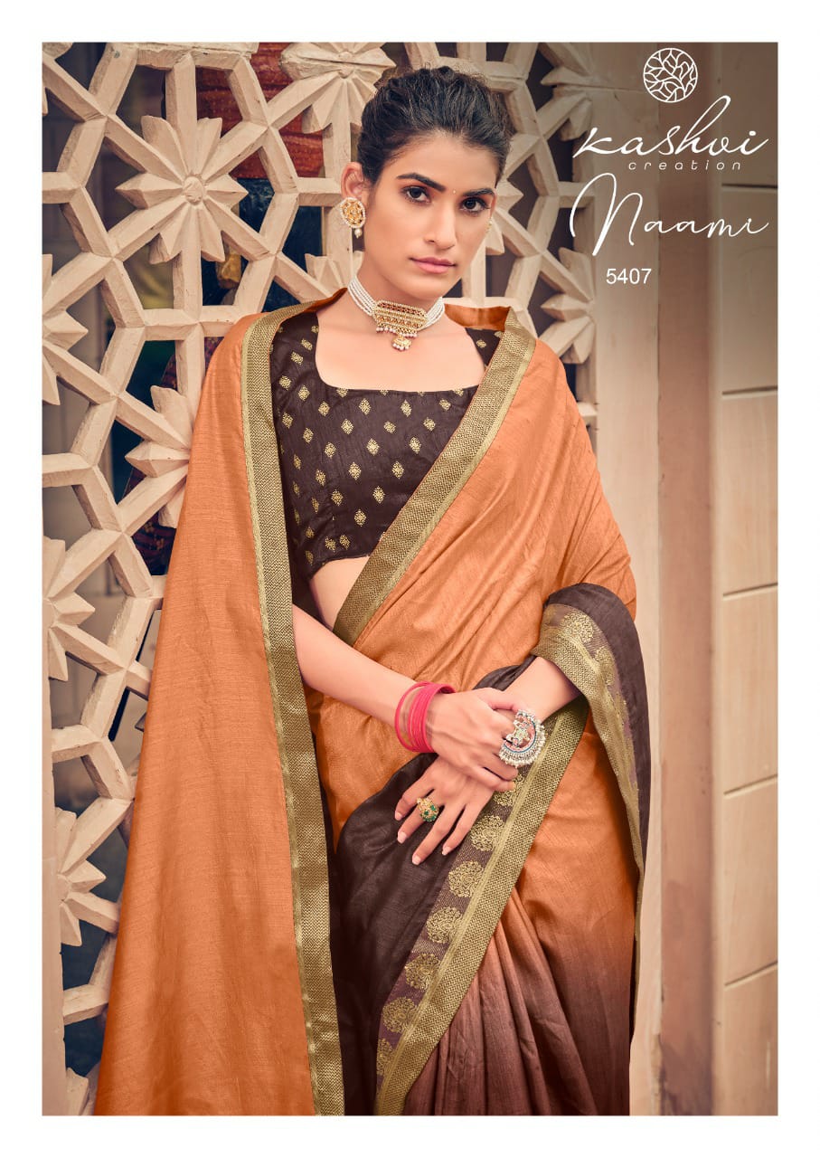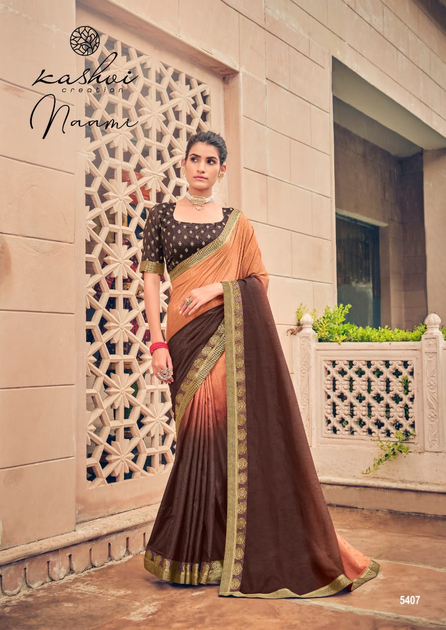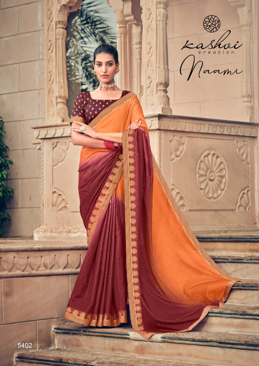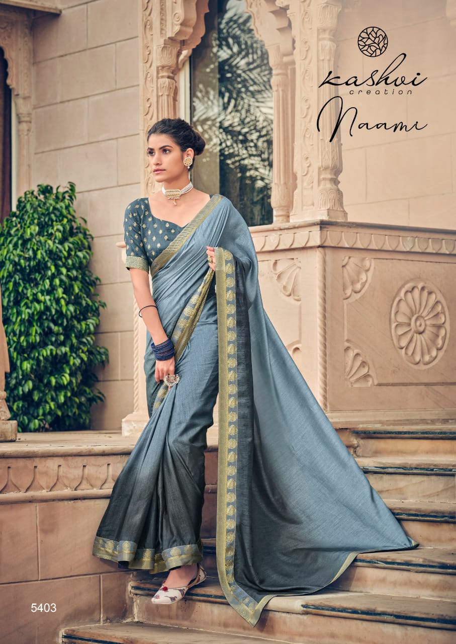 Kashvi Creation Presents Naami 5401 - 5410 Series Dola Silk With Fancy Blouse And Swarovski Diamond Work Fancy Party Wear Saree Collection