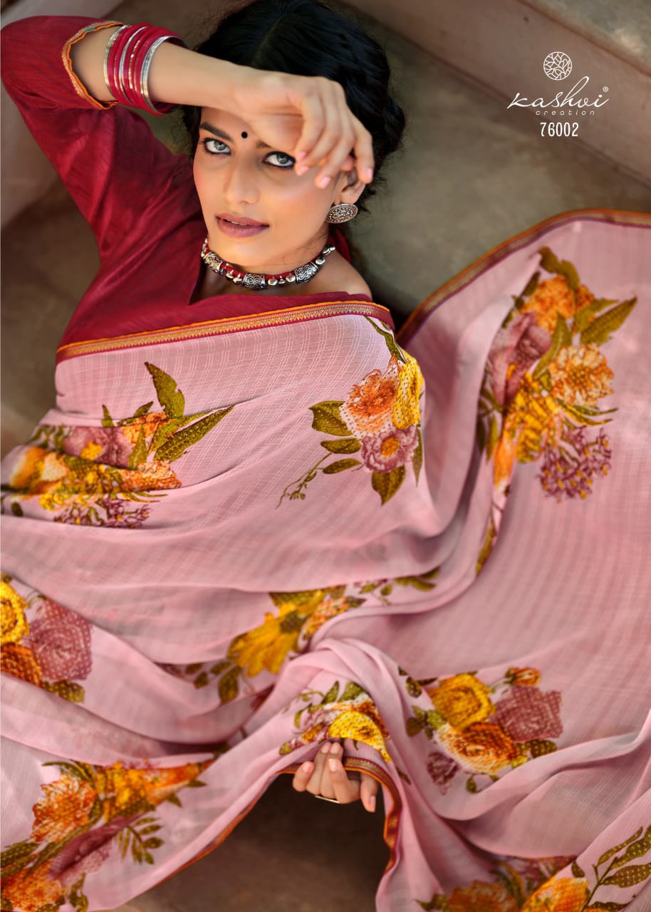 Kashvi Creation Presents Naina 76001 - 76010 Series Georgette Patten With Zari Work Fancy Casual Wear Saree Collection