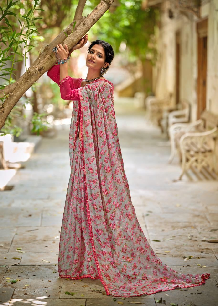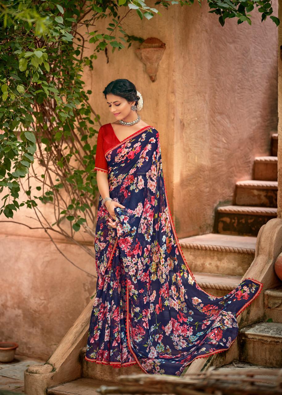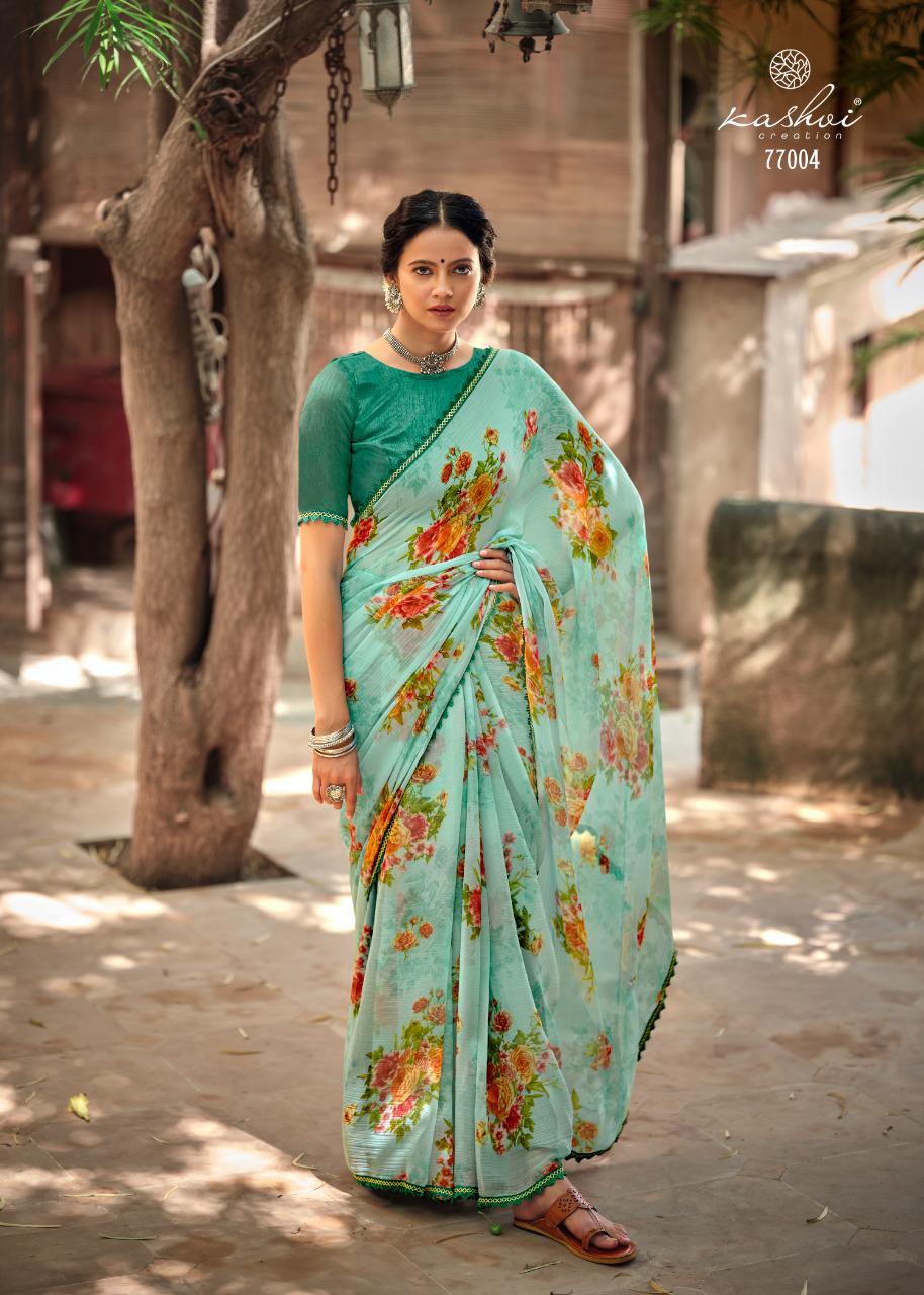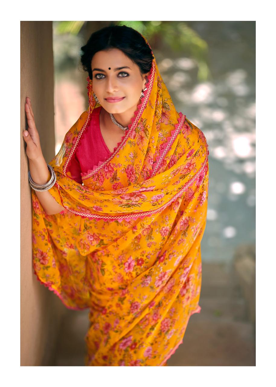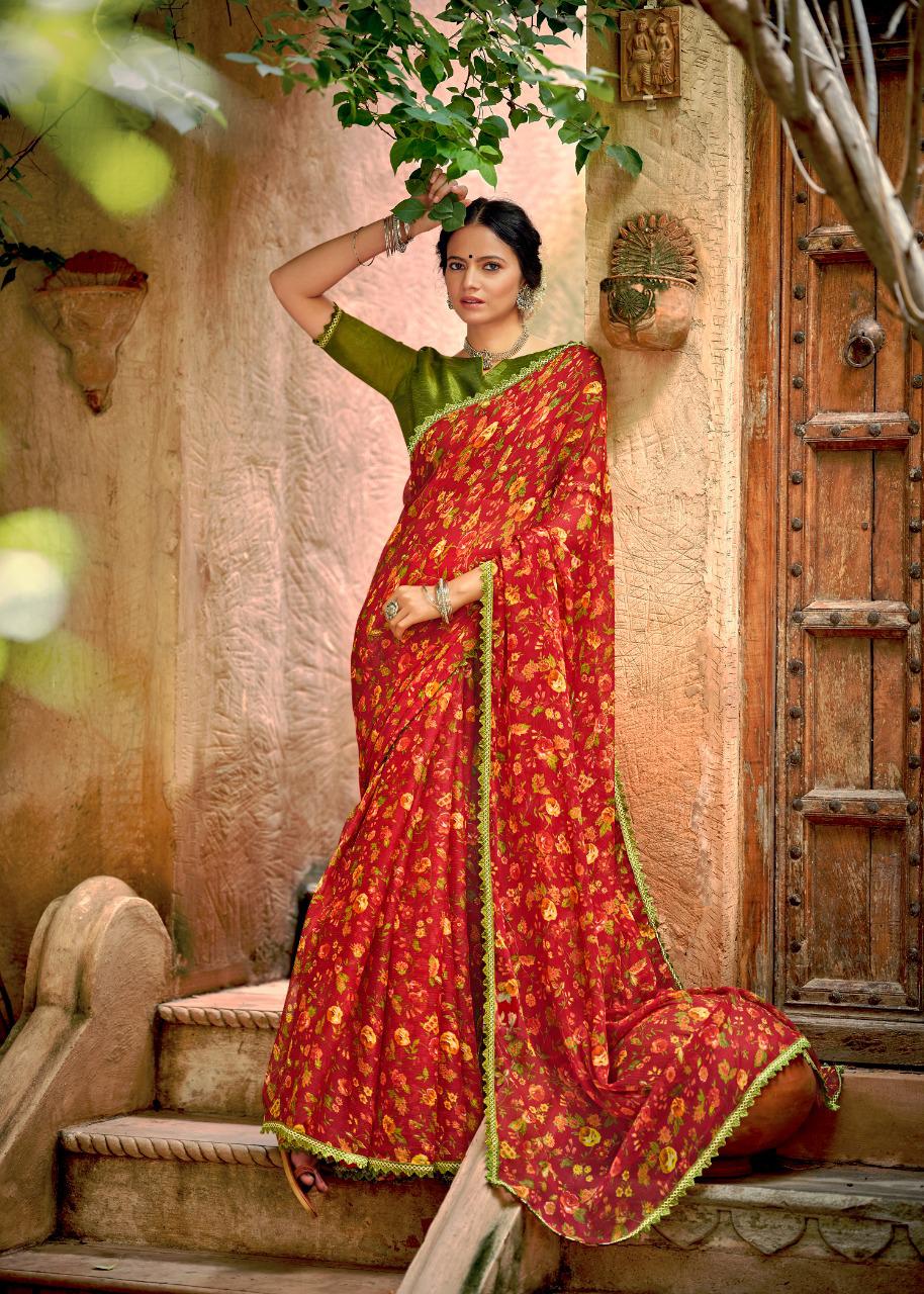 Kashvi Creation Presents Radhika 77001 - 77010 Series Chiffon With Fancy Lace Casual Wear Saree Collection