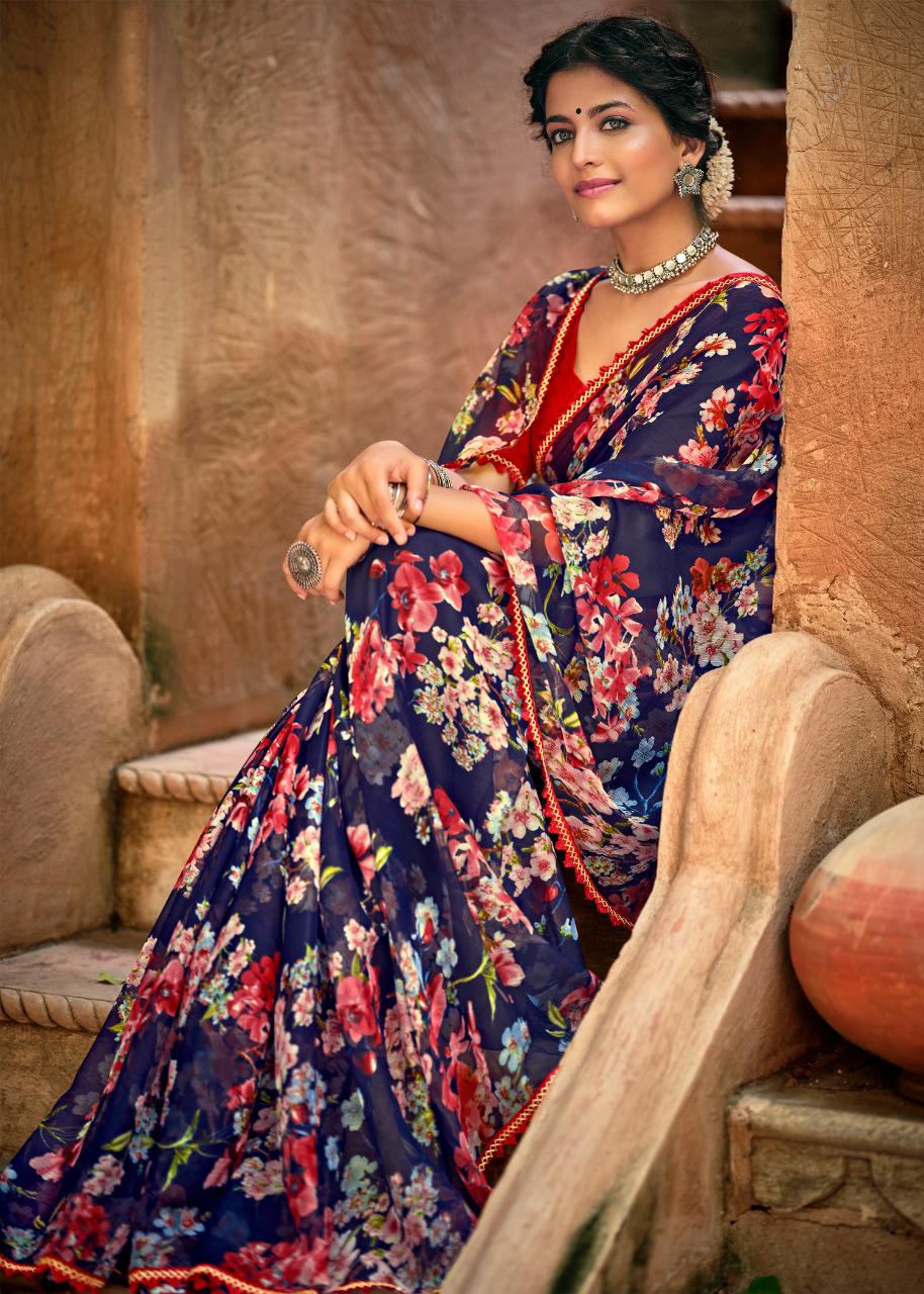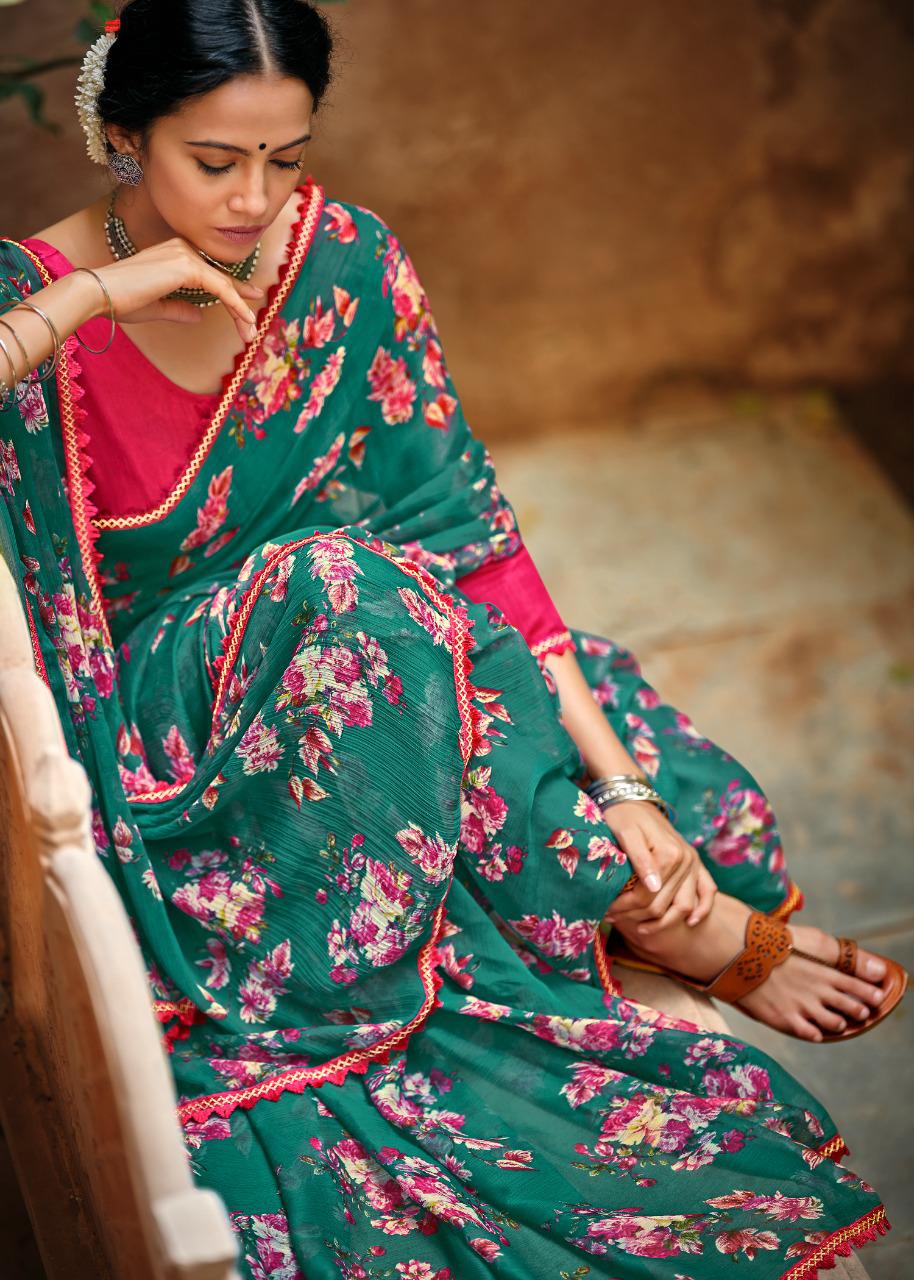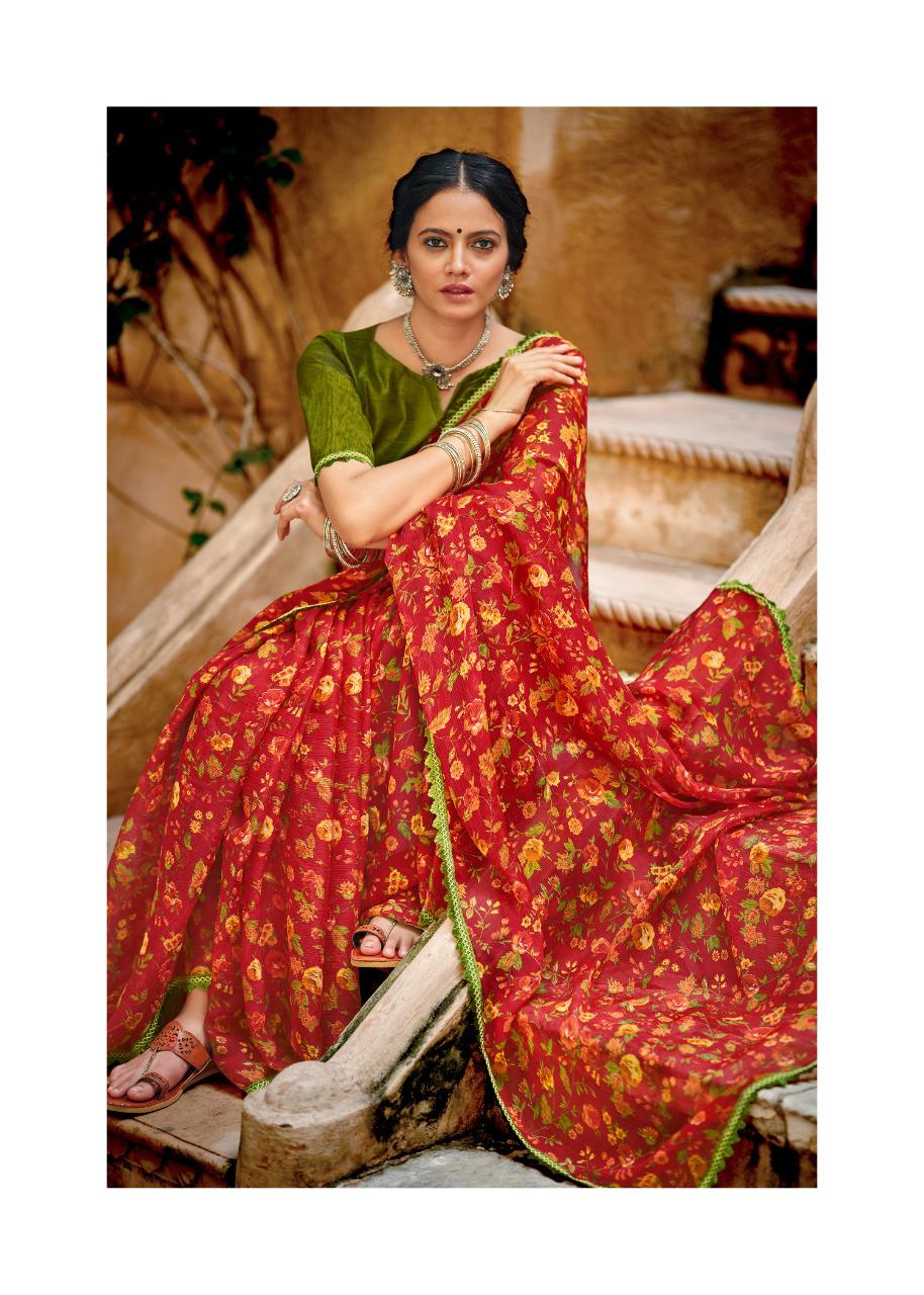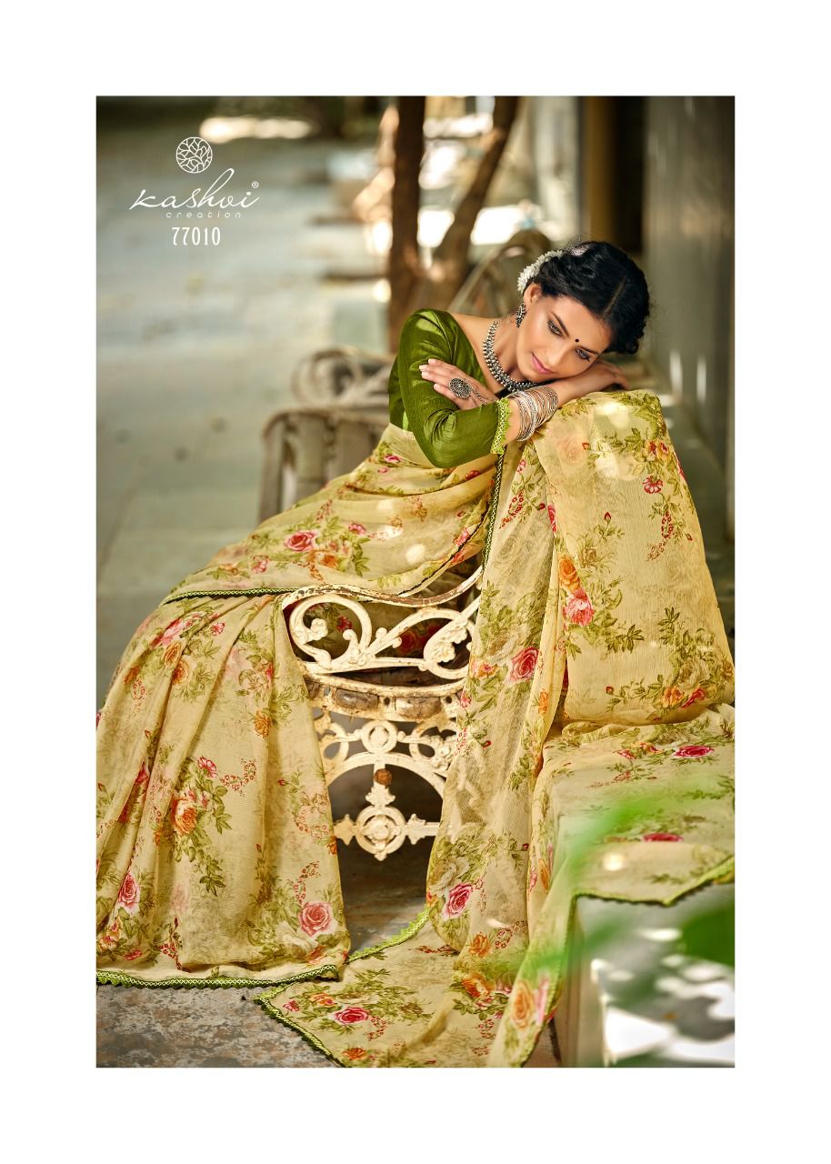 Kashvi Creation Presents Radhika 77001 - 77010 Series Chiffon With Fancy Lace Casual Wear Saree Collection