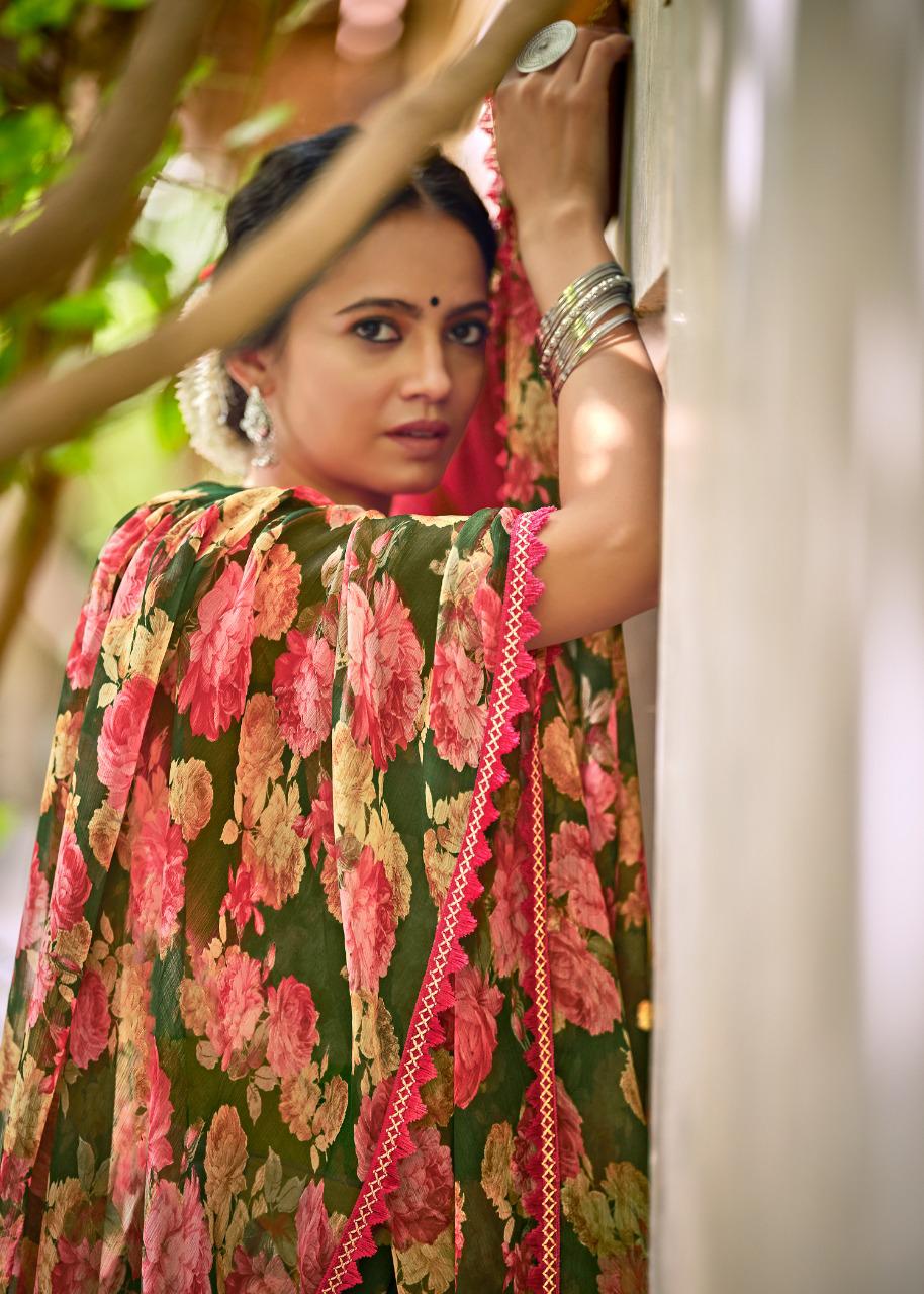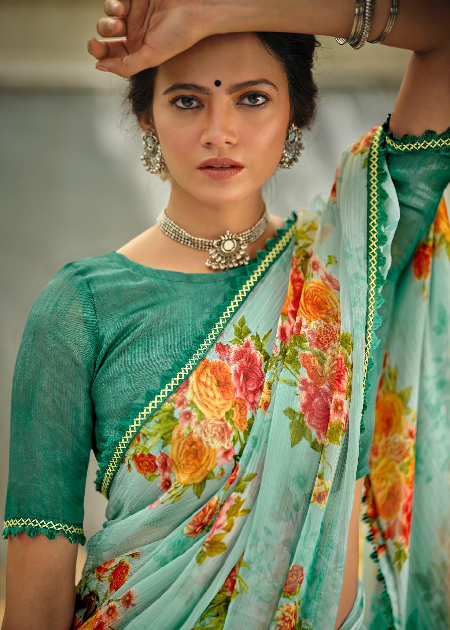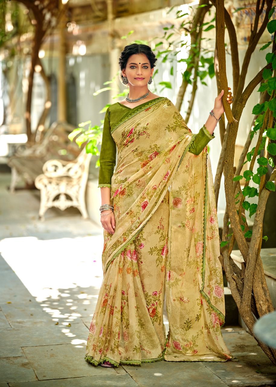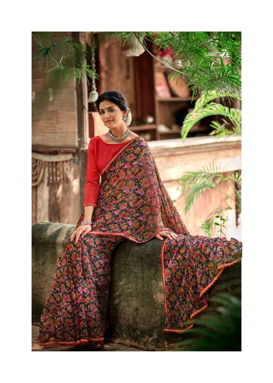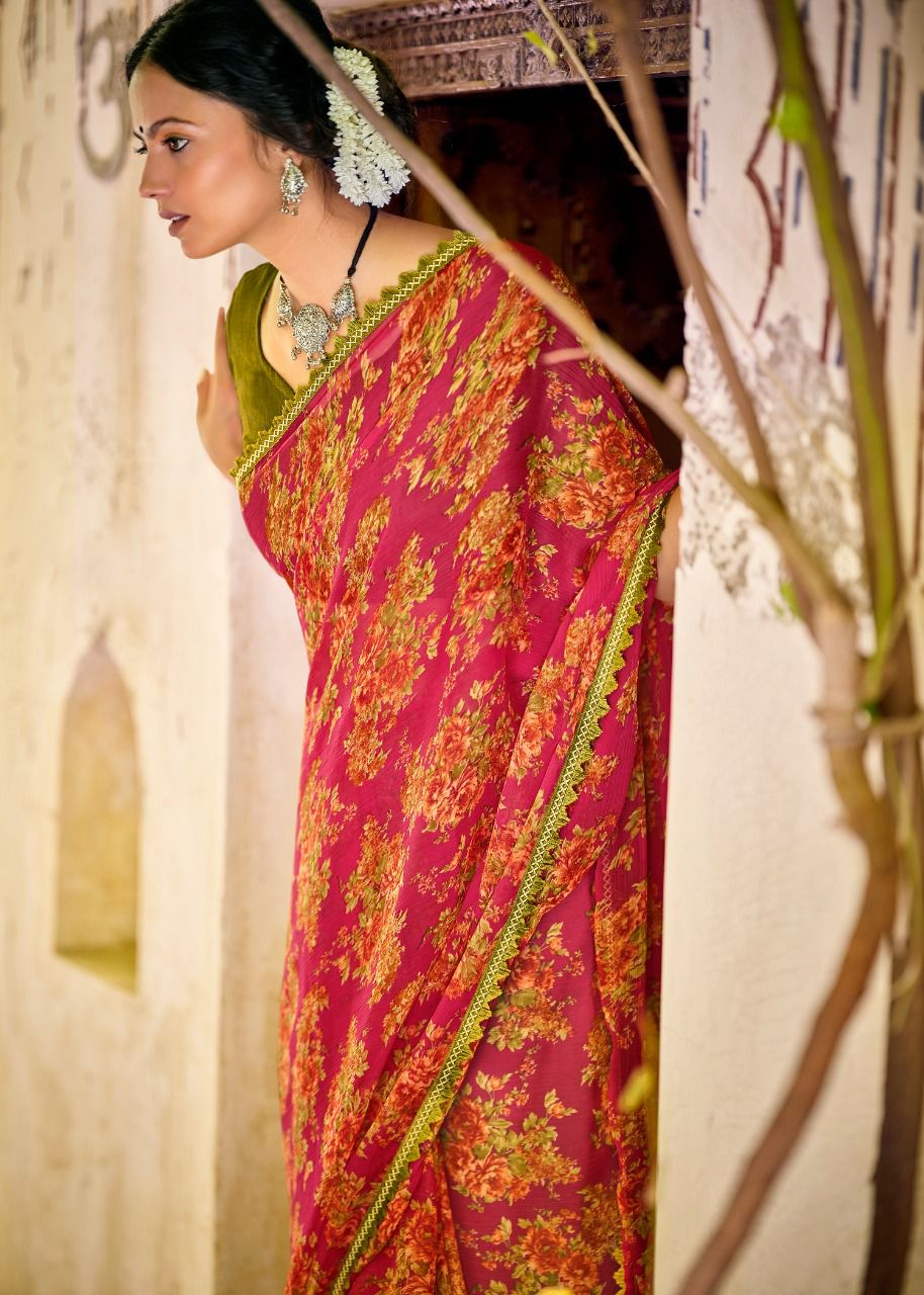 Kashvi Creation Presents Radhika 77001 - 77010 Series Chiffon With Fancy Lace Casual Wear Saree Collection