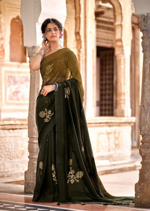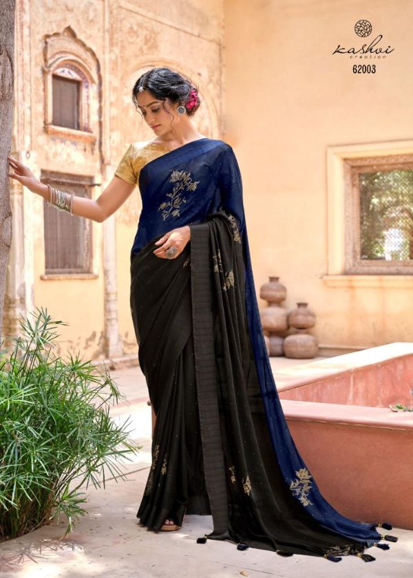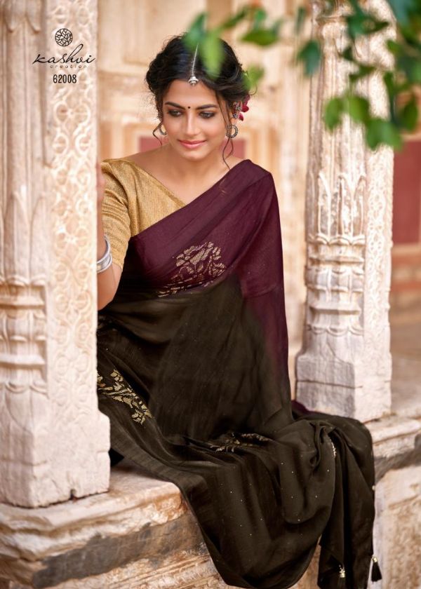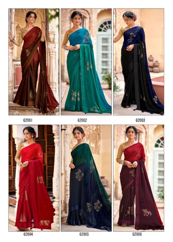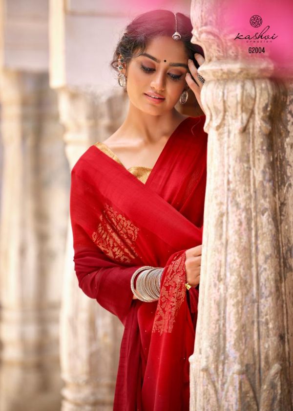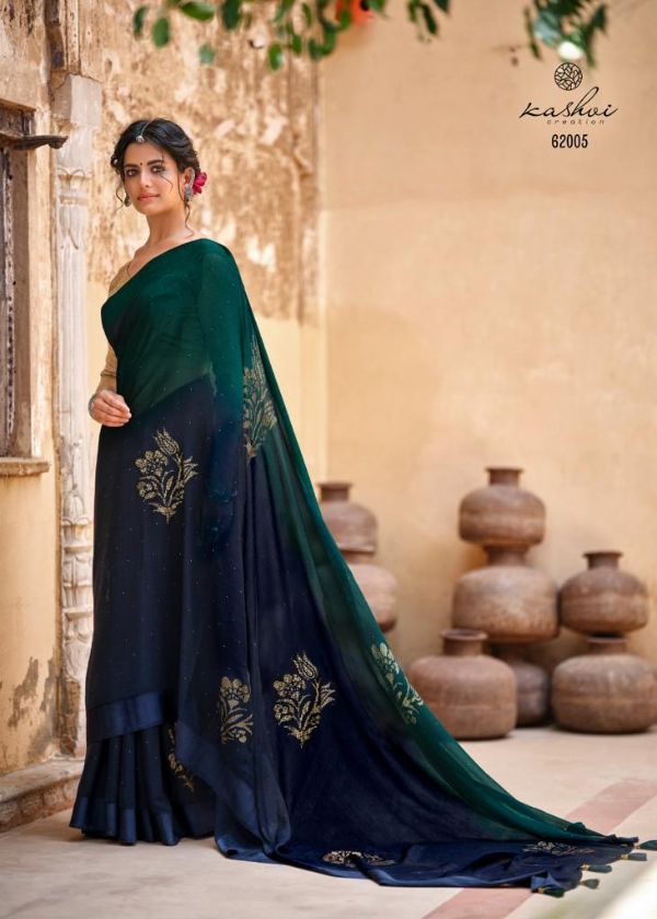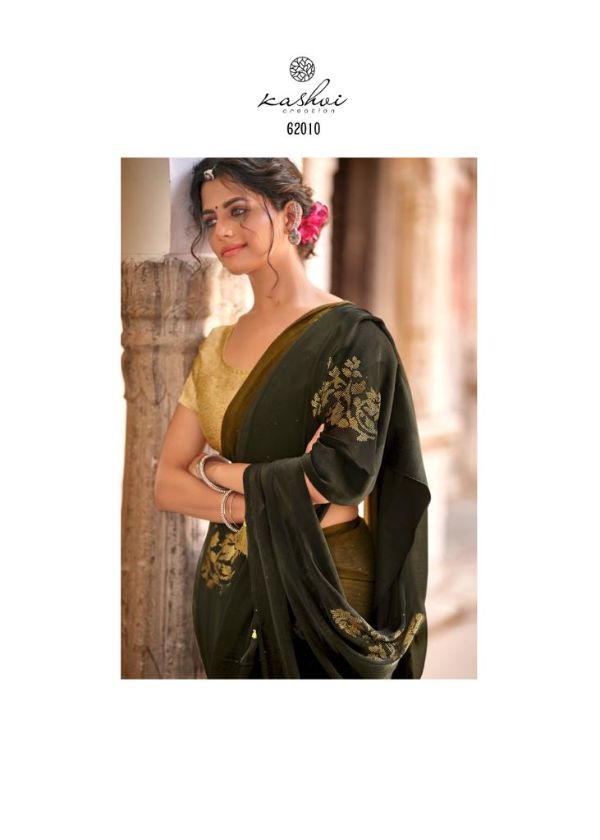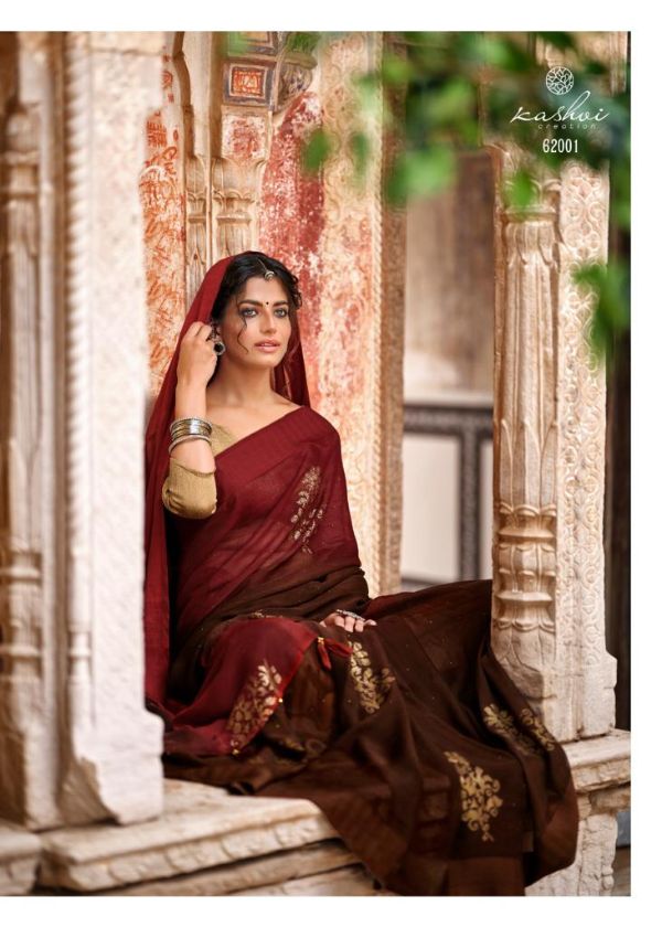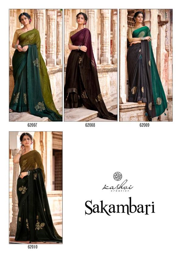 Kashvi Creation Presents Sakambari 62001 - 62010 Series Pure Chiffon With Jacquard Border Fancy Casual Wear Saree Collection