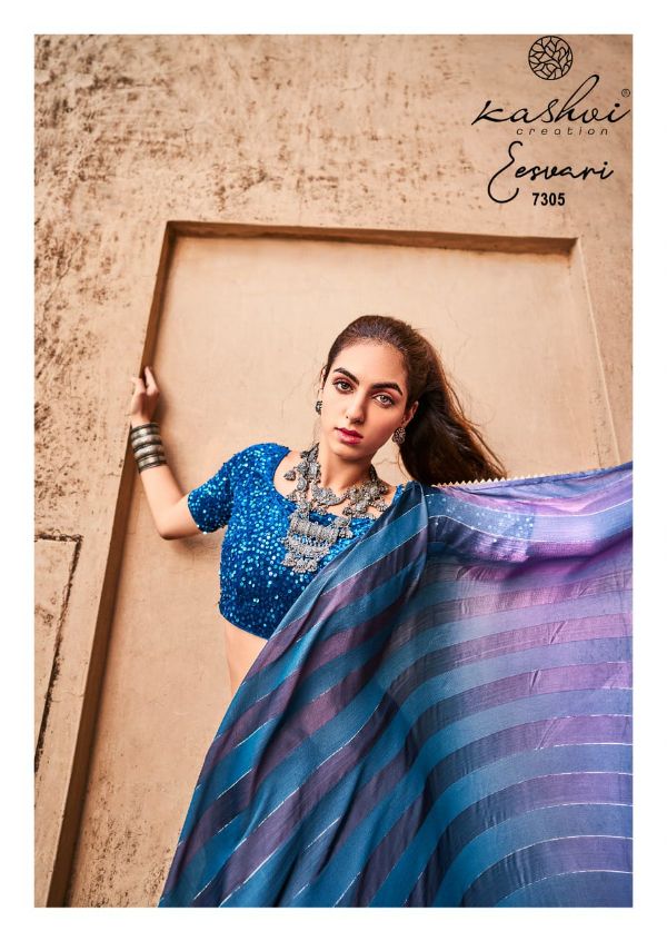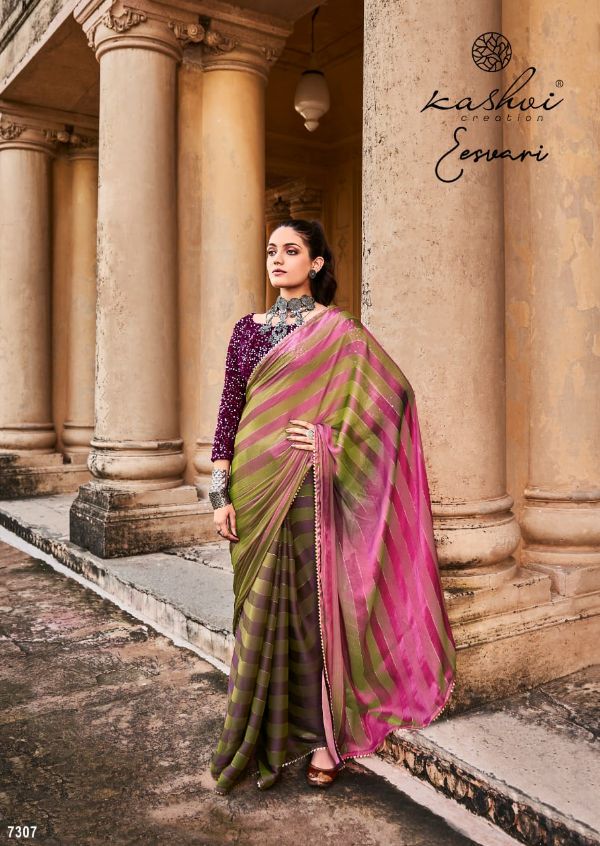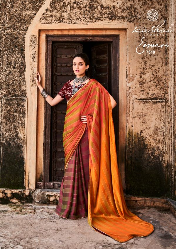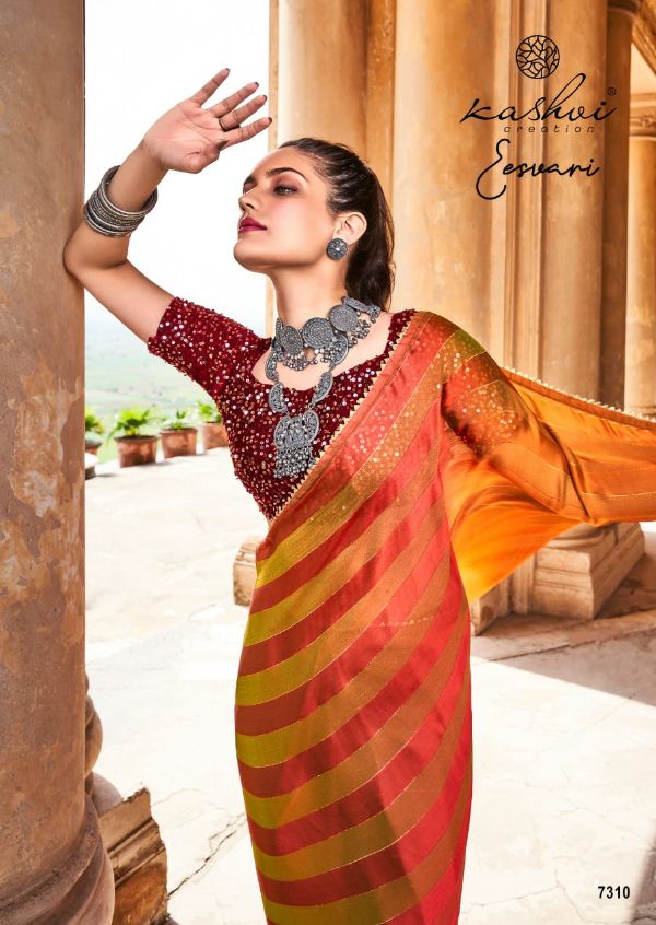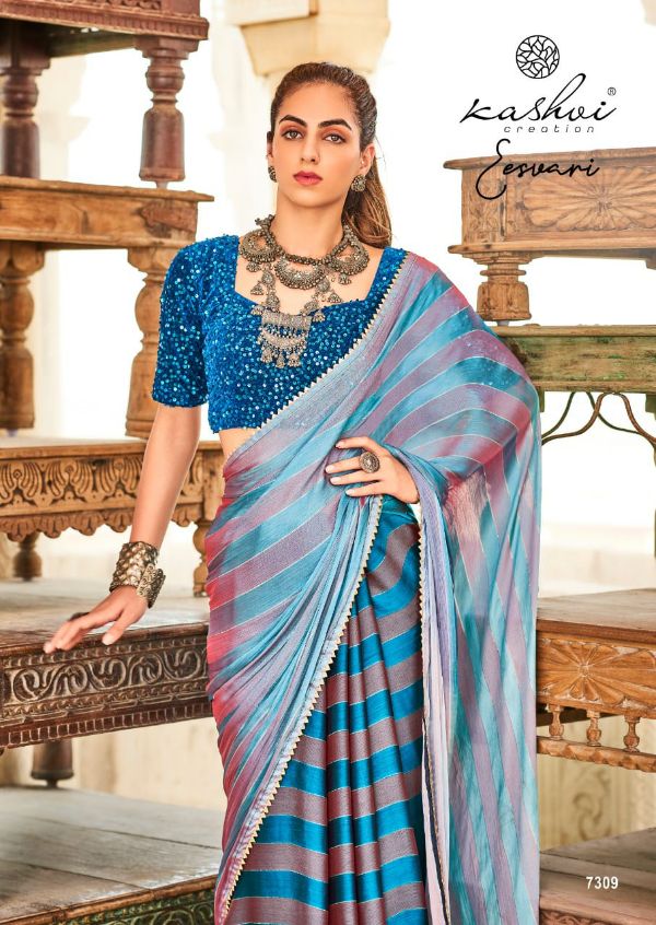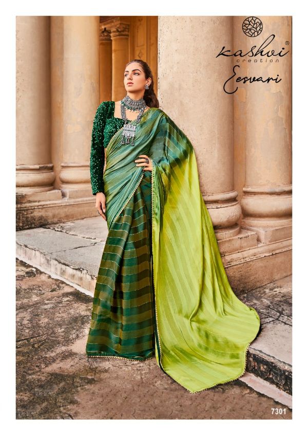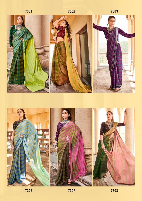 Kashvi Presents Eeshvari 7301-7310 Series Rainbow Satin Patta With Fancy Lace And Designer Blouse Saree Collection