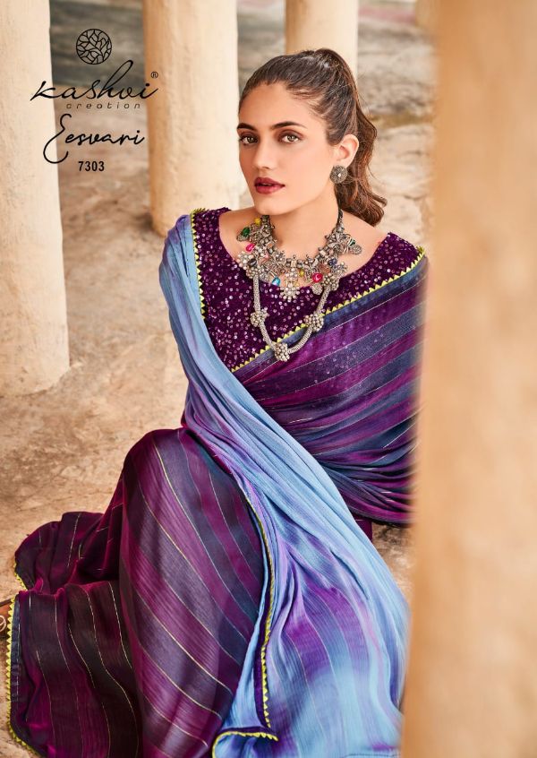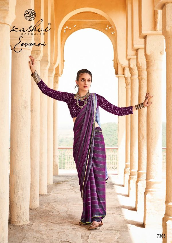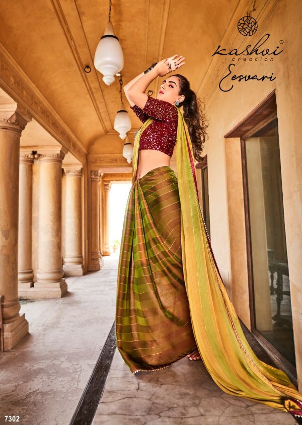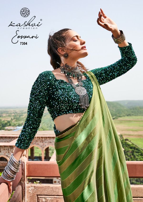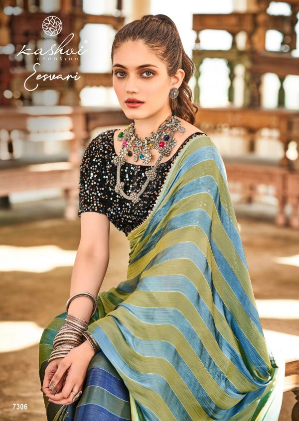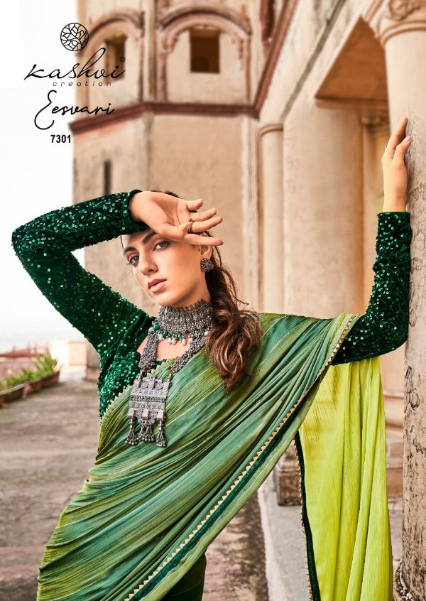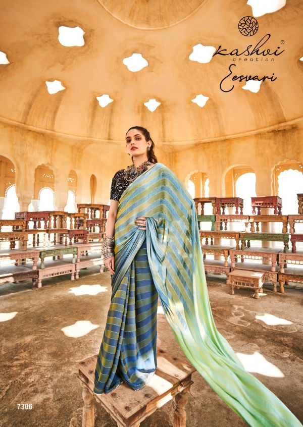 Kashvi Presents Eeshvari 7301-7310 Series Rainbow Satin Patta With Fancy Lace And Designer Blouse Saree Collection