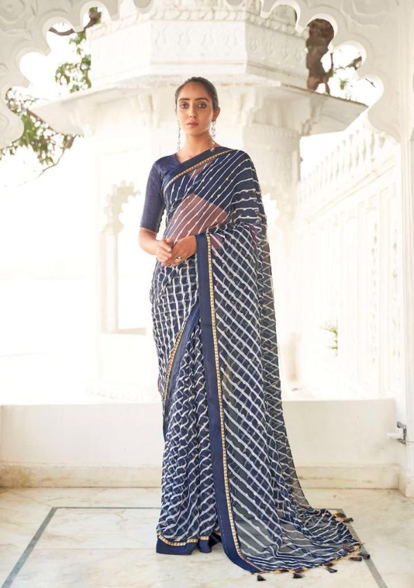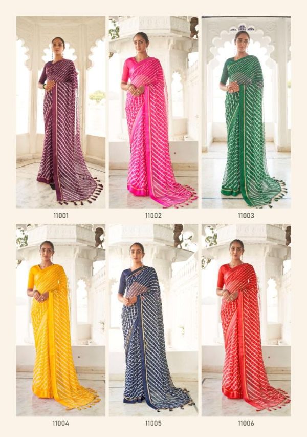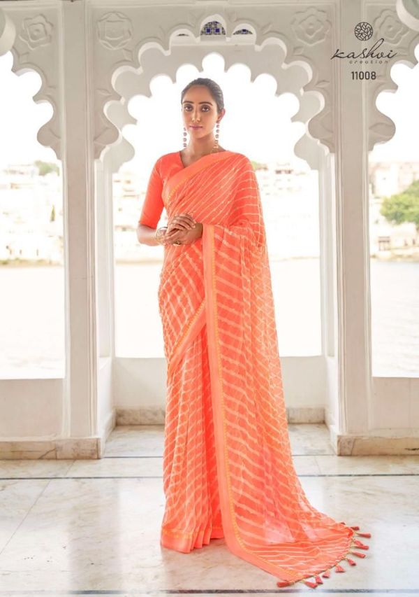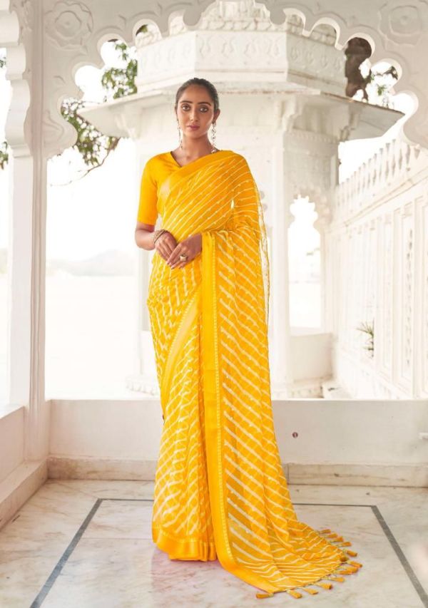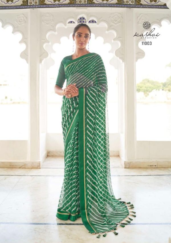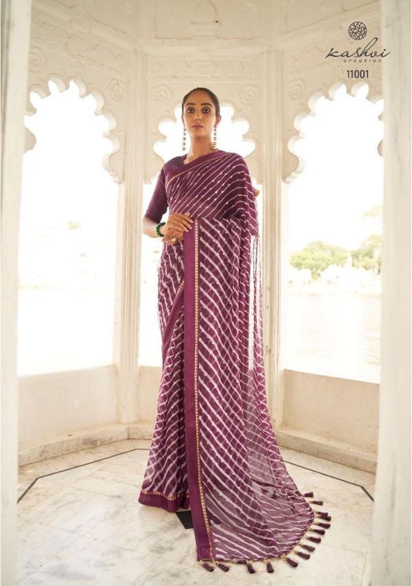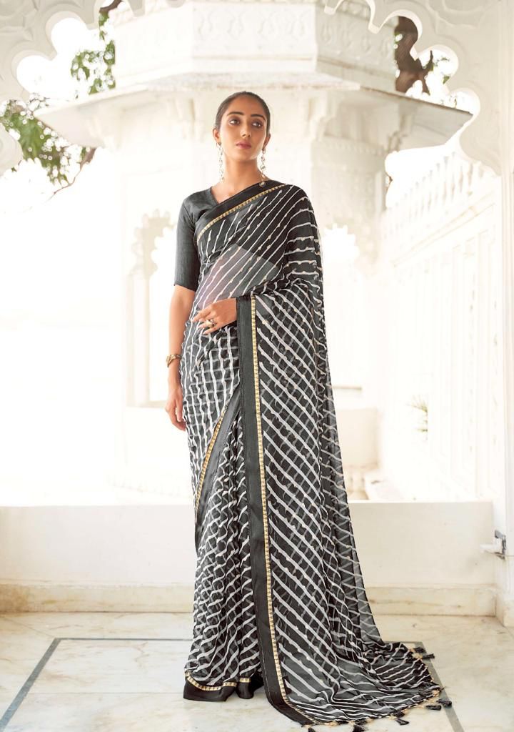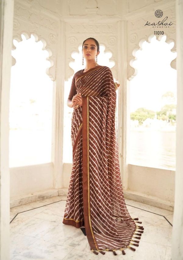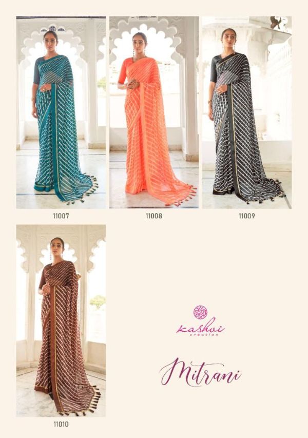 Kashvi Presents Mitrani 11001 - 11010 Series Chiffon With Viscose Satin Patta Border And Foil Print Fancy Casual Wear Saree Collection