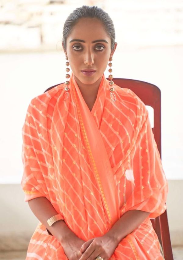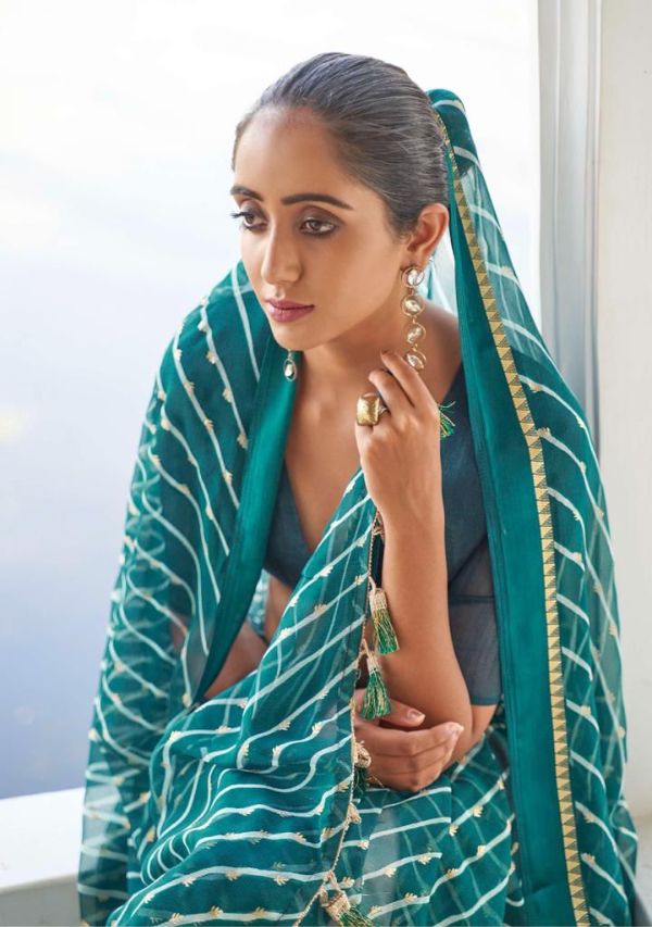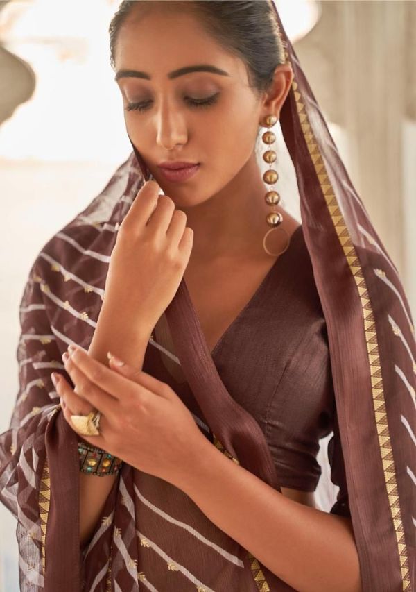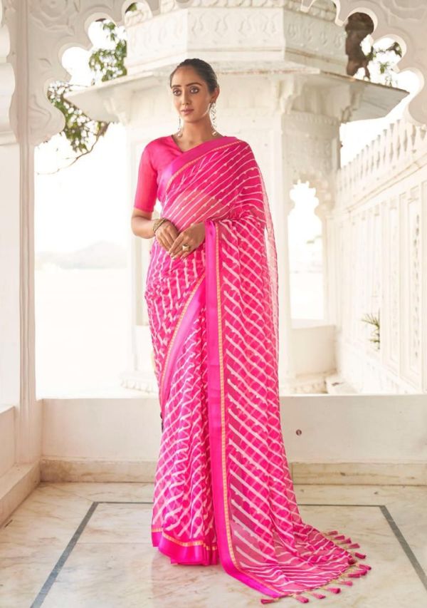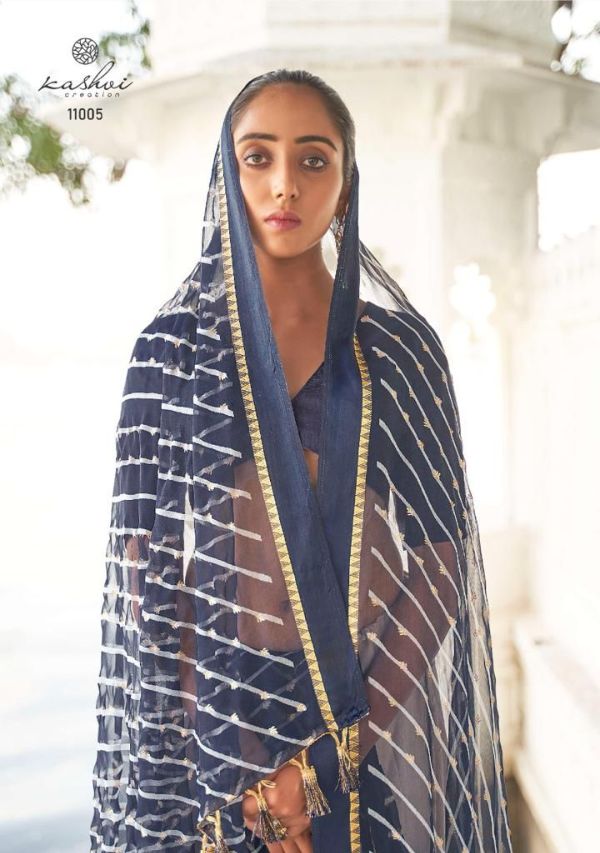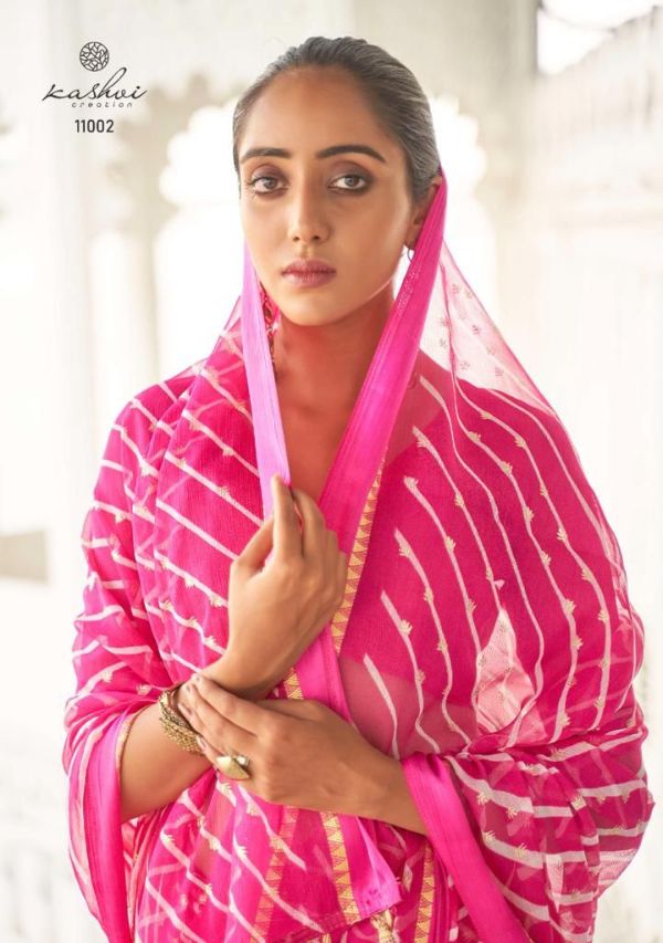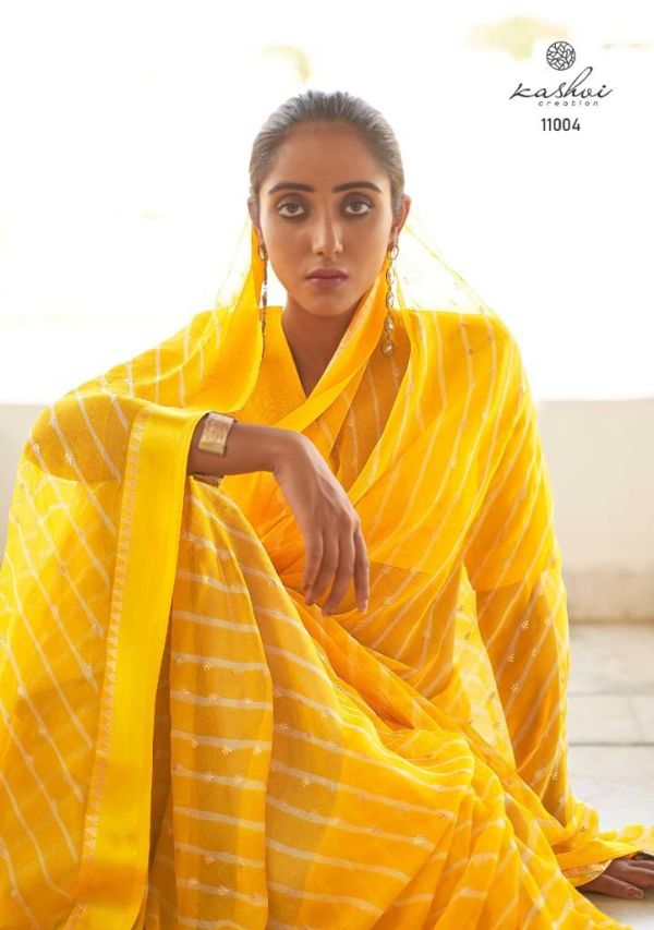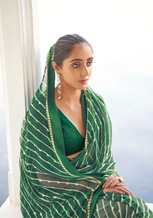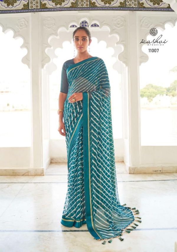 Kashvi Presents Mitrani 11001 - 11010 Series Chiffon With Viscose Satin Patta Border And Foil Print Fancy Casual Wear Saree Collection
