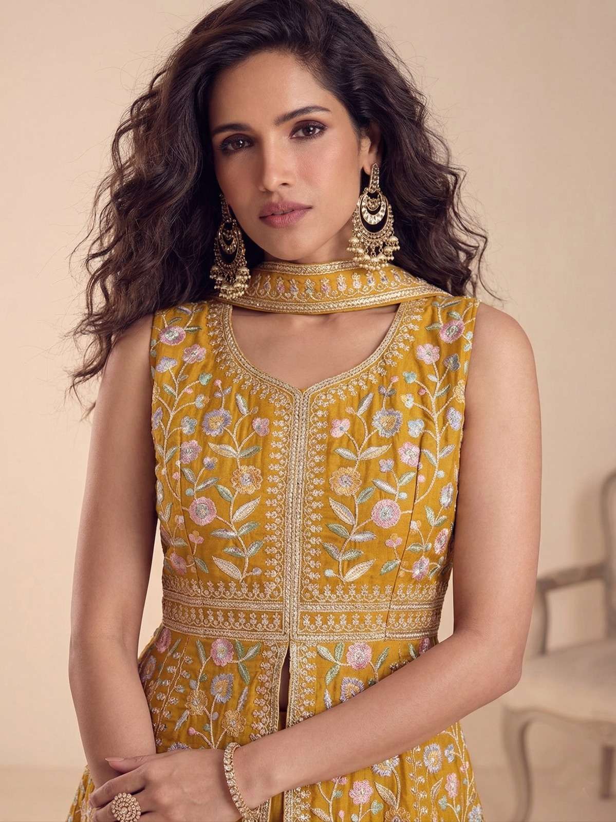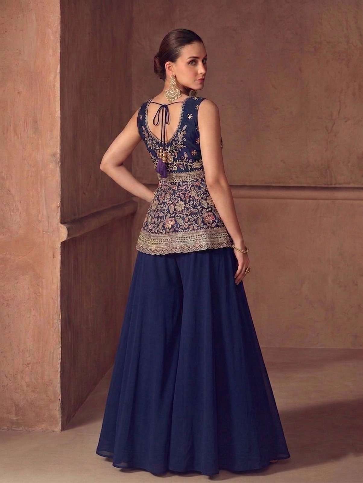 TOP :- heavy star GEORGETTE + front and back both side Beautiful all over sequence lakhnavi Embroidery work (M, L , XL, XXL)