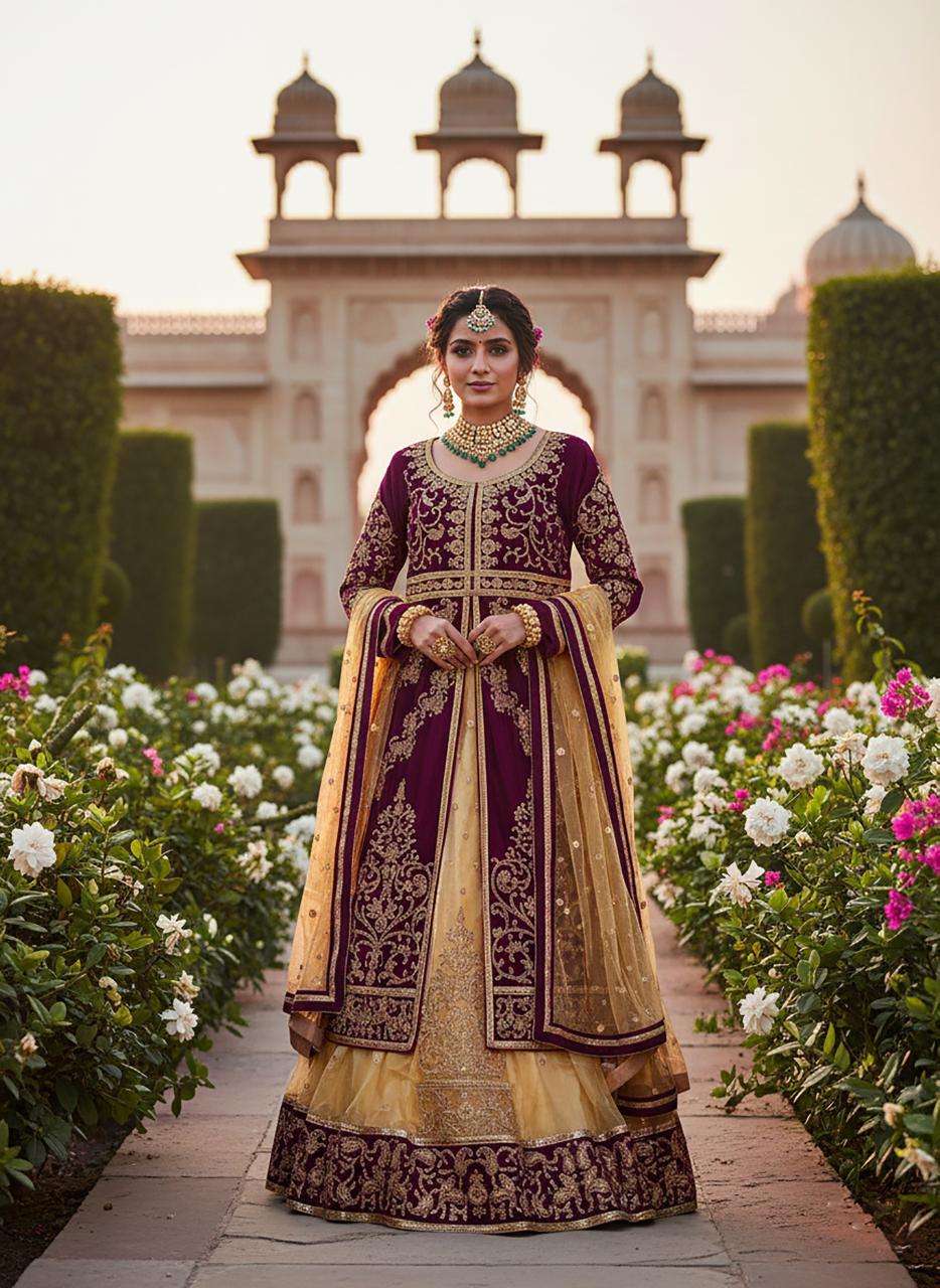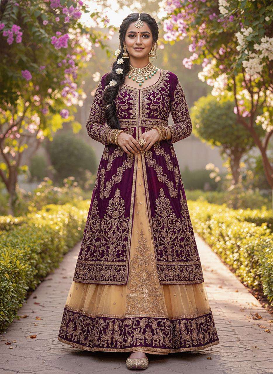 ANARKALI TOP- -9000 markable Velvet +Beautiful Embroidery work fancy dori & stone work