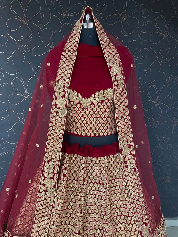 Kb Series Present Bridal Lehenga Dn- Kb 1054 Velvet With Beautiful Embroidery Work Fancy Dori Work Bridal Collection