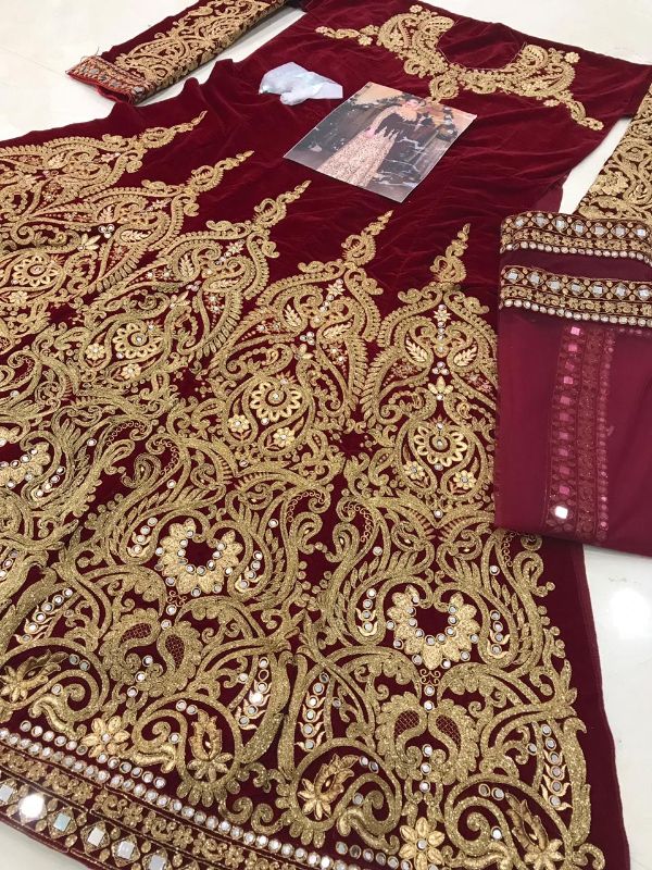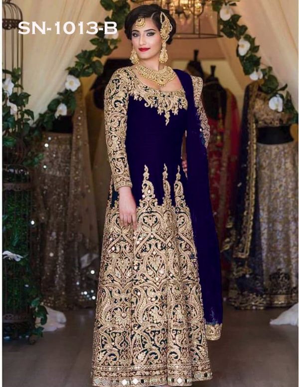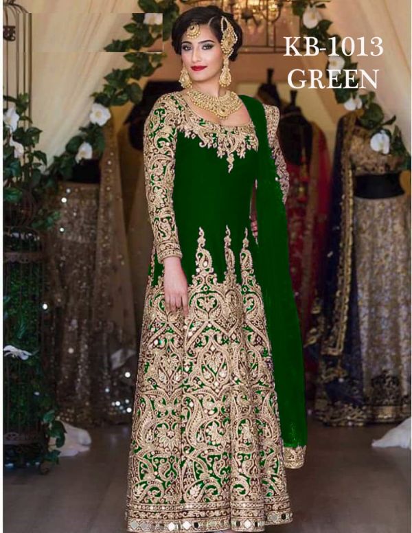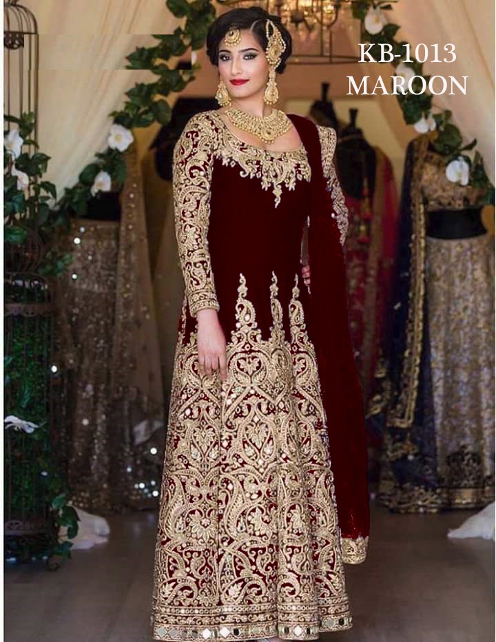 Kb Series Presents Kb 1043 Beautiful Velvet With Attractive Embroidery Work Bride Wear Long Gown Collection