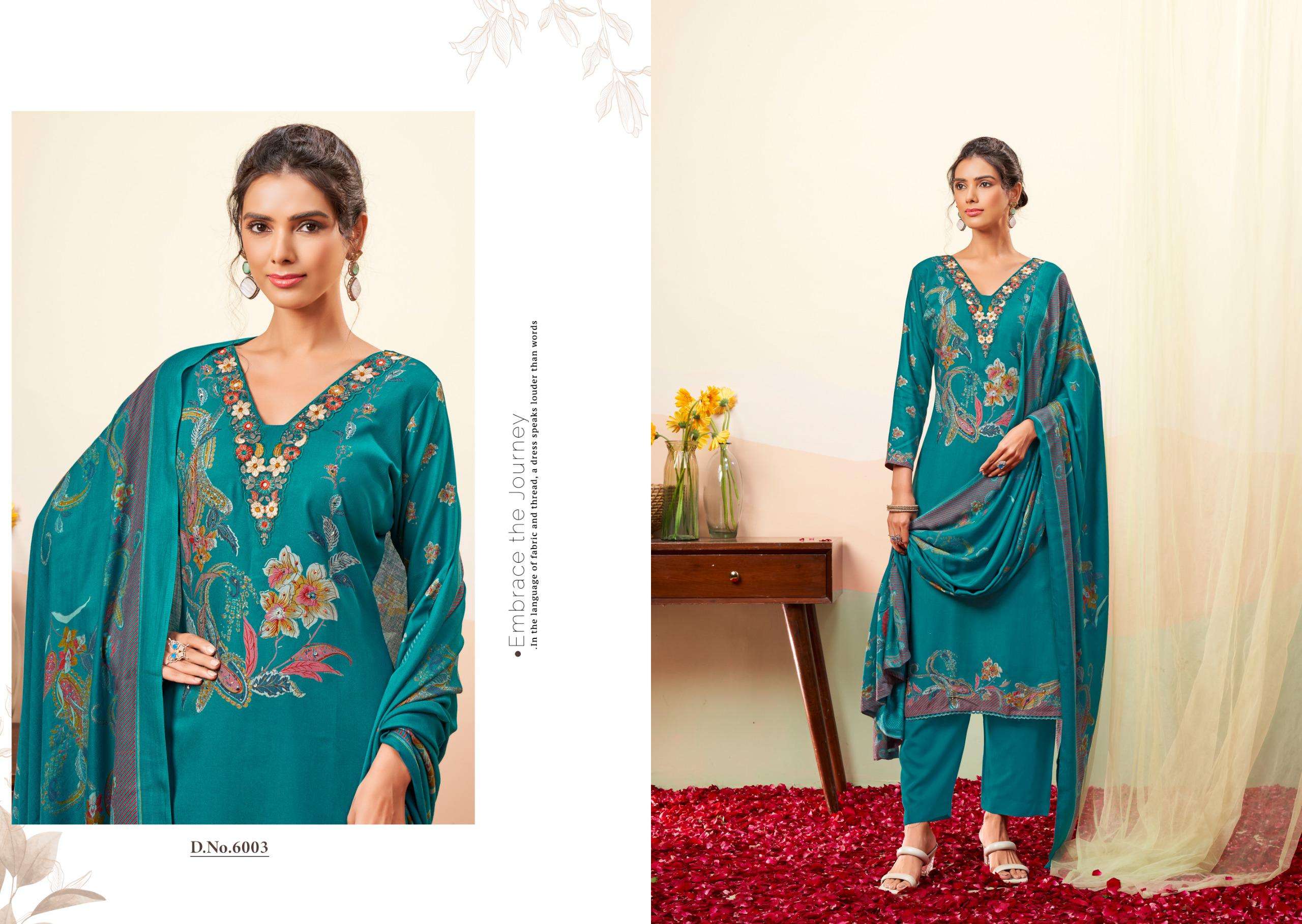 | Catalogue: | KESAR ZEENAT 6001 VISCOSE PASHMINA DIGITALLY PRINTED SUIT WITH EMBROIDERY |