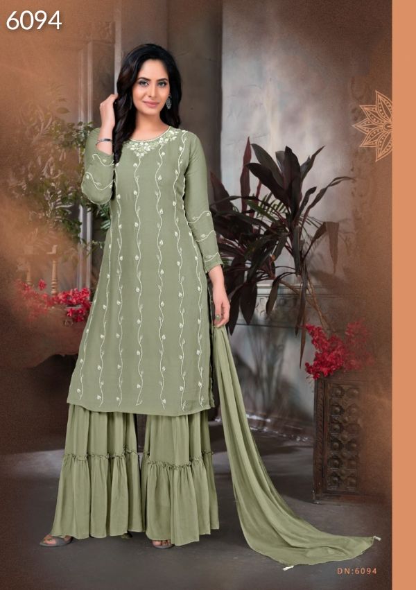 Kesari Presents 6091-6094 Series Pure Viscose Georgette With Crape Salwar Suit Collection