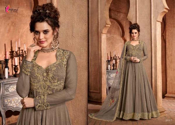 Latest Designer gown Collection. Exclusive with Foil & Thread Embroidery Work gives a Fashionable Look, High sensed style and luxury makes you ready for envious glazes and very rich & Royal in the Party, Function, Event etc.