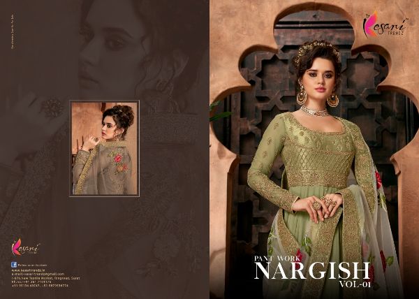 Kesari Trends Presents Nargish Vol-1 2013 - 2017 Series Heavy Blooming Georgette With Heavy Embroidery Work With Diamond Fancy Long Gown Collection Diwali Special