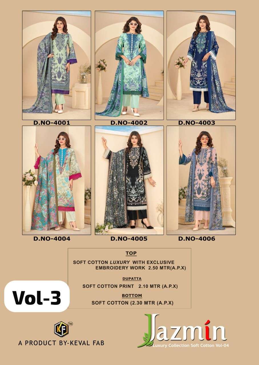 | Catalogue: | Keval Fab JAZMIN VOL 3 Premium Soft Cotton Embroidered Pakistani Suit |